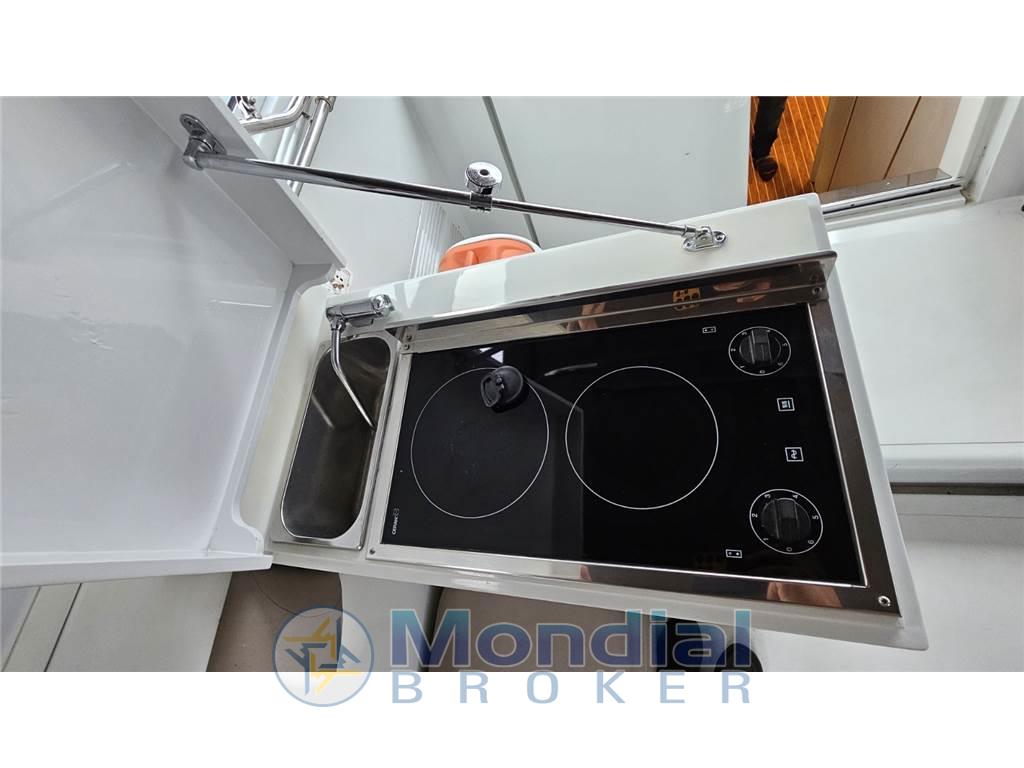 Elica di prua elettrica - passerella elettro idraulica Besenzoni - antenna TV SAT Raymarine - TV LCD - tender con fuoribordo - gruppo elettrogeno EMI 3,5 kW - inverter - mobile bar in pozzetto con lavello e piano cottura elettrico due fuochi - piano cottura elettrico - forno combinato microonde - frigo e ghiacciaia Vitrifrigo in pozzetto - tavolo pozzetto idraulico - doccetta a poppa, pozzetto e prua - scaletta da bagno idraulica e manuale in acciaio.