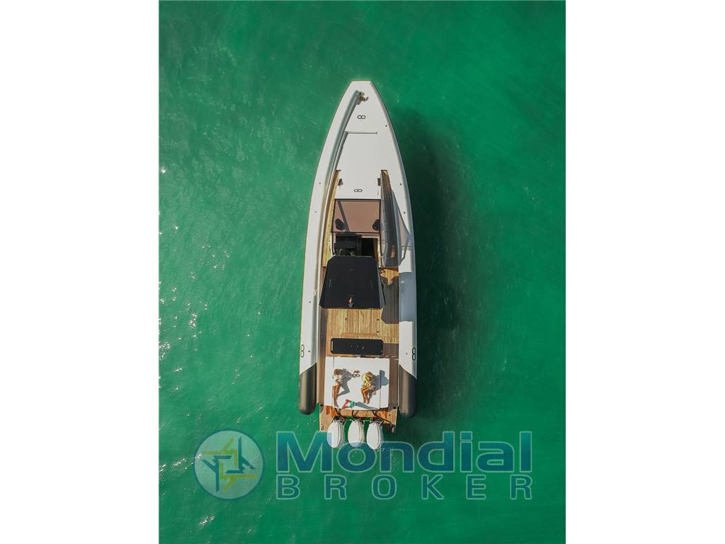 Power, elegance, and comfort on the sea. With a total power of 900 hp, generated by three 300-hp Yamaha engines, the Seanfinity R4 embodies the perfect harmony between performance and Italian sophistication. Its advanced, lightweight, and efficient planing hull guarantees smooth, safe, and comfortable sailing even at high speeds, easily reaching 50 knots.