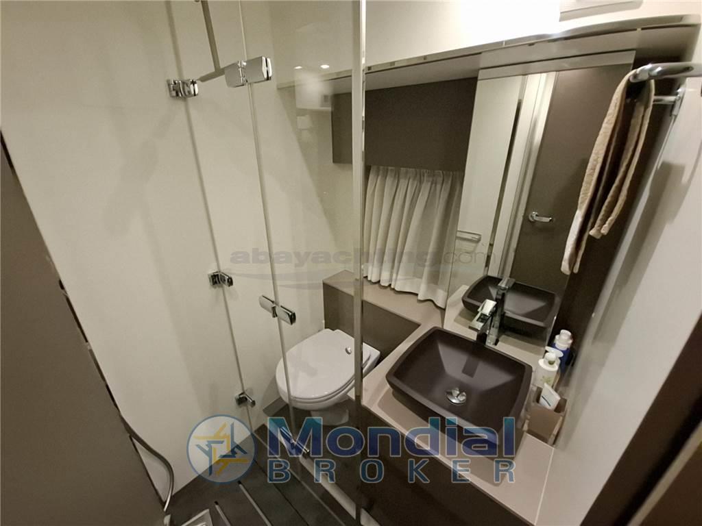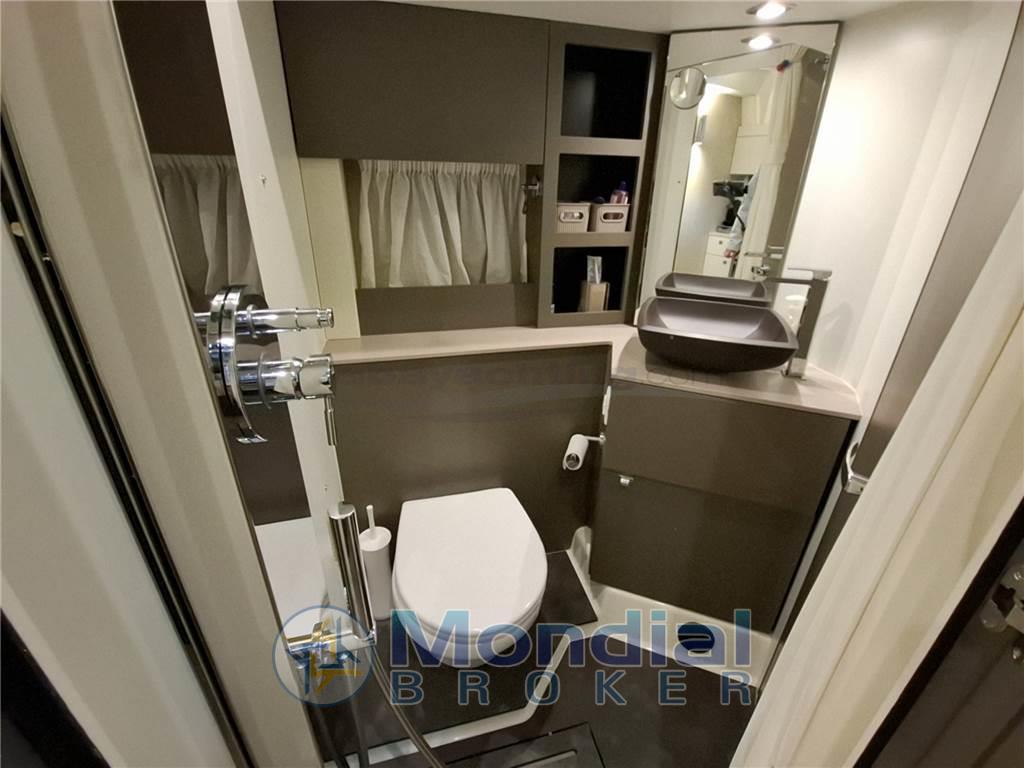 Acqua Calda, Cassaforte, Clima reversibile (Convertibile da 16.000 BTU), Impianto acque nere, Indicatore del serbatoio del carburante, Indicatore del Serbatoio dell’Acqua, Indicatore del Serbatoio delle Acque Reflue, Indicatore della pressione dell’olio nel motore, Indicatore della temperatura del motore, Pavimento interno in legno (Legno chiaro), Prese interne 12v, Prese interne 220v, Serbatoio Acque Nere, Sistema Idrico, 2 WC marino elettrico.