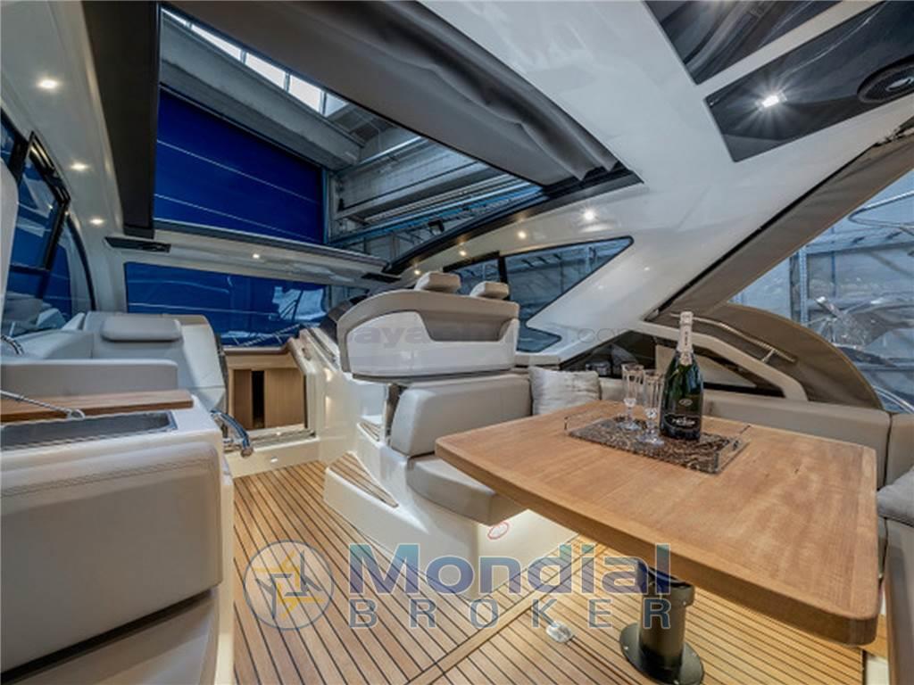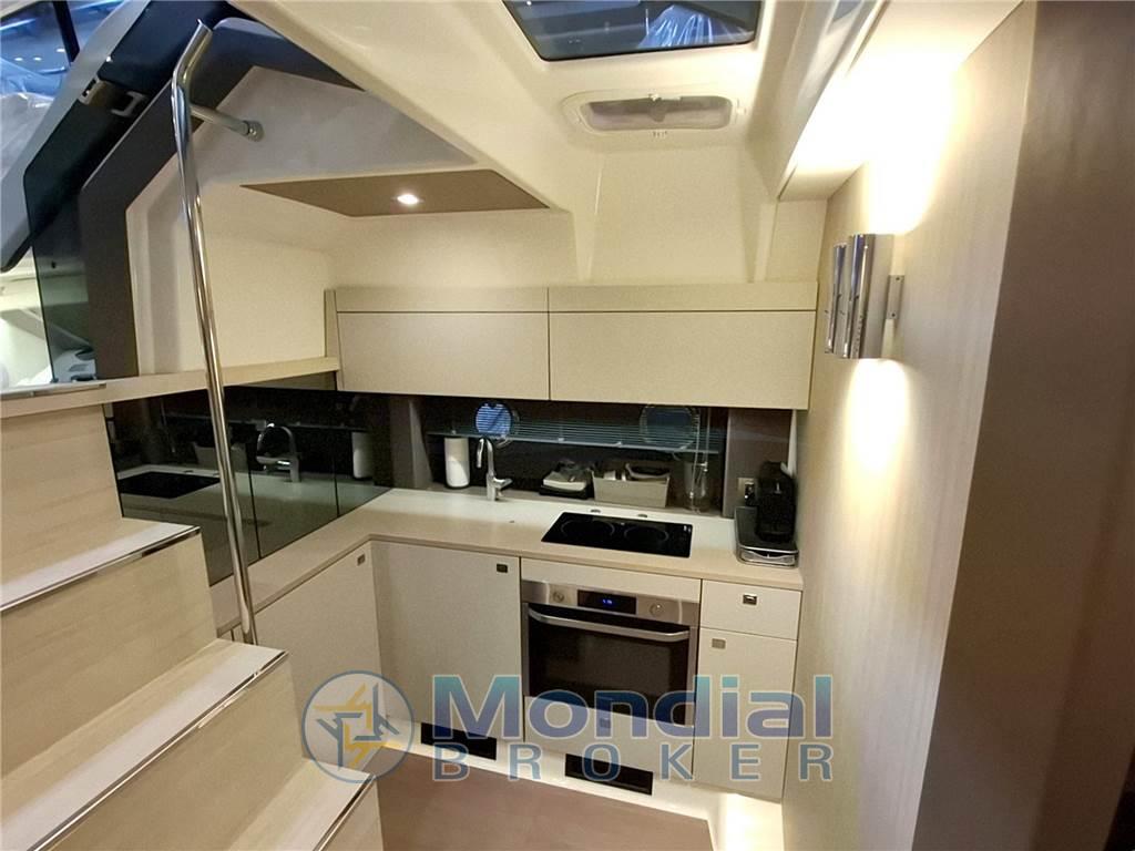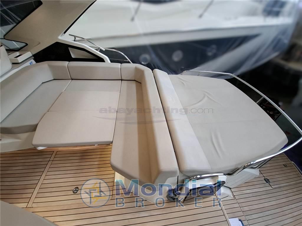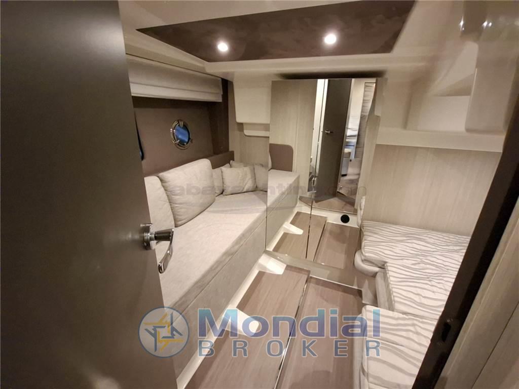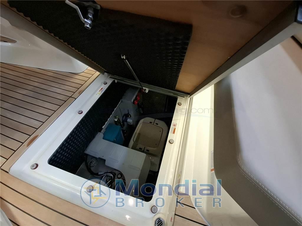 Super accessoriata: generatore 220v, elica di manovra a prua, garage per il tender, climatizzatore reversibile da 16.000 BTU, correttori di assetto a lama della Volvo Penta, hard-top con tetto elettrico a doppia tela, tavolo del pozzetto telescopico, passerella idraulica Besenzoni illuminata, bimini ombreggiante per il prendisole di prua, tendalini completi per la chiusura del pozzetto, Wet Bar esterno con frigorifero e lavello, elettronica Raymarine completa di radar, pilota automatico e cruise control.