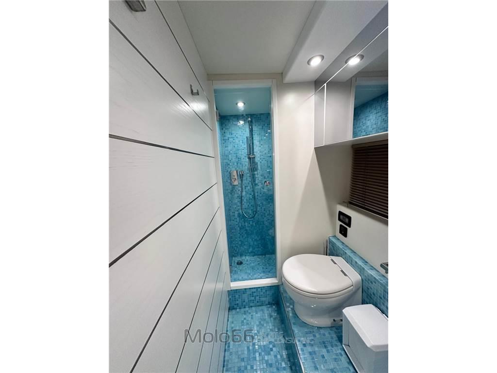 Allarme fumo/gas, Allarme motore, Allarme sentina, Ancora, Apertura Vano Motore Elettrica, 2 Autoclave, Camminamenti laterali in teak, Cavo corrente di banchina, Doccia esterna, Elica di prua - bow thruster, Fari fissi a poppa, Faro orientabile, Flap elettrici, Garage per tender, Impianto antincendio, Indicatori Flaps, Luci di cortesia, Parabordi, Passerella, Pompa di Scarico del Serbatoio Acque Reflue, Pompa di sentina automatica, Ponte in teak, Porta ingresso, Pozzetto Teak, Presa 220V banchina, Presa acqua banchina, Salpa Ancore Elettrico, Scaletta da bagno, Winch.
