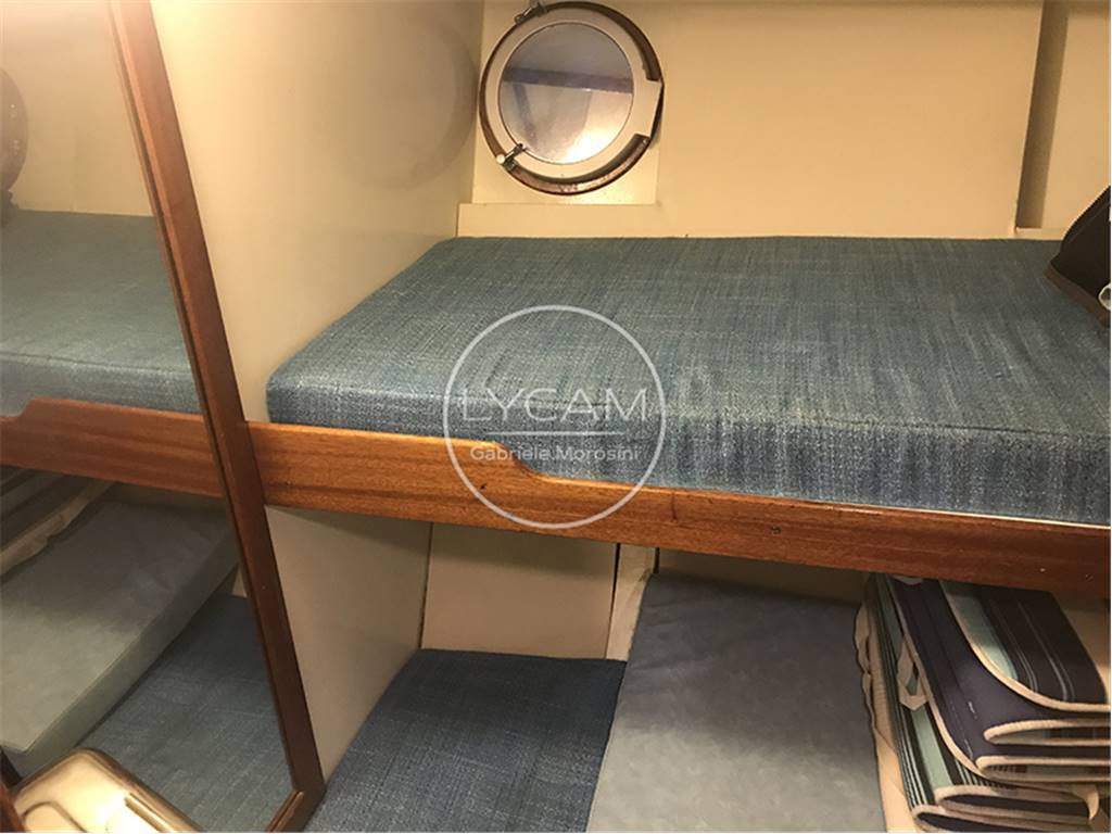 Luci di navigazione; Luci di fonda; Luci subacquee; Luci pozzetto led; Tergicristallo; Tromba; Faro di profondità; Salpa ancore elettrico; Bitte di ormeggio; Parabordi; TV; 2 frighi; Blower; Flaps; Boiler Quick (25 lt.); Generatore Mase (3kw); Caricabatterie Quick; Stacca batterie; 3 Batterie servizi (100A); 1 Batteria motori (200A); 1 Batteria generatore (100A); Presa a terra; Pompe di sentina elettriche; Tavolo dinette originale; Doccia pozzetto calda/fredda; Tendalino pozzetto; Plancetta maggiorata in teak e acciaio; Scaletta bagno; Gruette per passerella; Eliche di rispetto; Elica di prua.