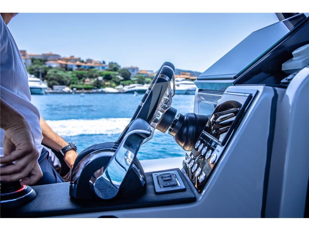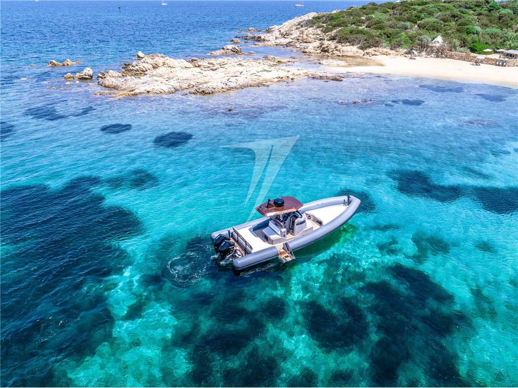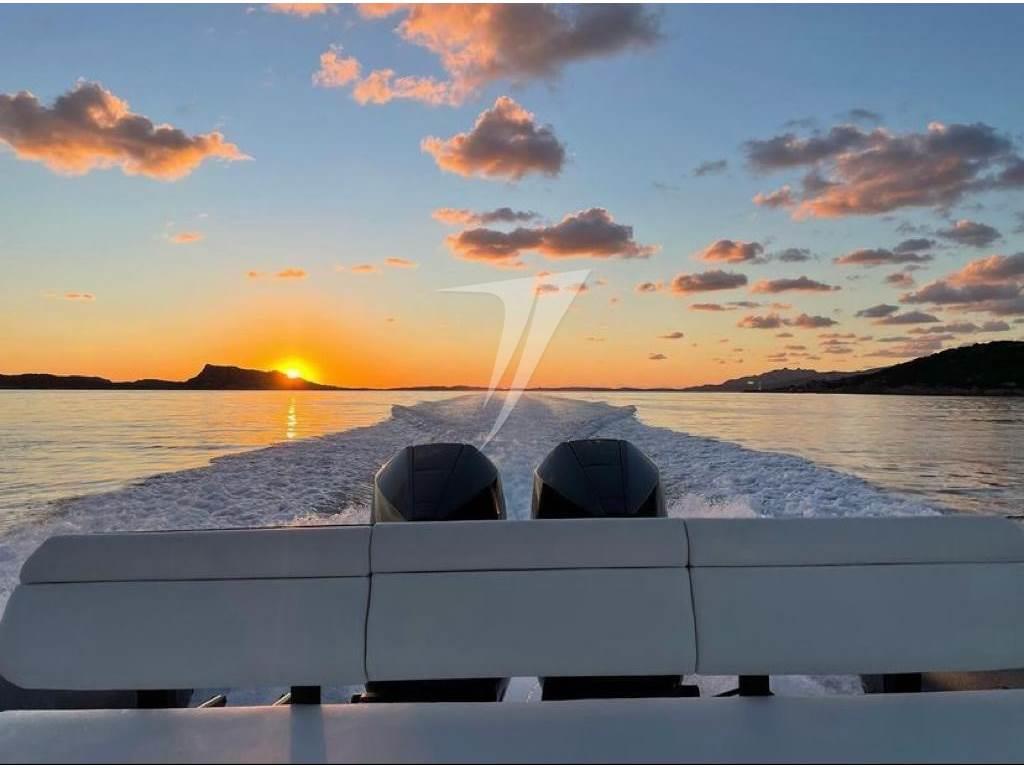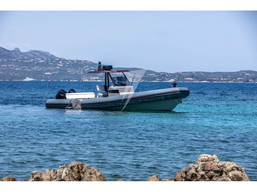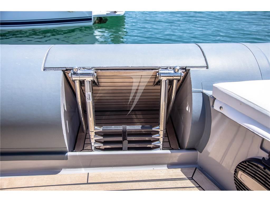 Caratteristica unica è la piattaforma per l'accesso in mare posizionata lateralmente, con apertura elettrica, dalla larghezza di ben 60 cm e impreziosita da teak e corredata da scala bagno a 5 gradini e tientibene in acciaio inox. Un tender, o una dey boat, elegante, dalle rifiniture di pregio che sicuramente non vi farà passare inosservati.