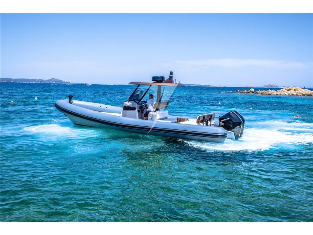 La gamma R10 rappresenta un tender che permette di raggiungere alte velocità in piena sicurezza, gode di ampi spazi interni grazie ad un perfetto layout di coperta. Il suo piccolo bagno interno è rifinito con i migliori materiali, dal marmo di Orosei al rovere sbiancato.