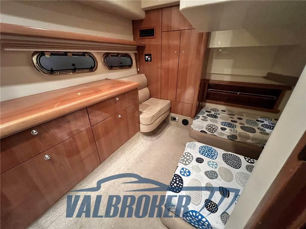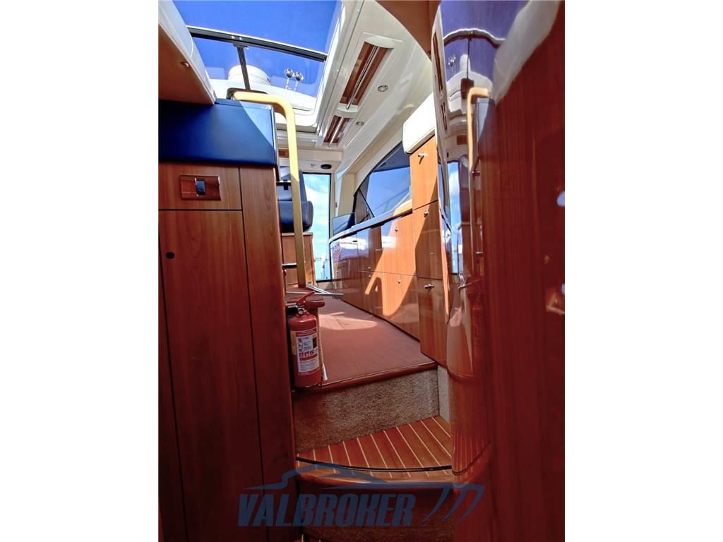 Una combinazione di prestazioni, comfort e innovazione. Hard Top di alta qualità e ben tenuto, motorizzato 2xVolvo Penta D6 310. Il salone può essere chiuso con porte scorrevoli e, allo stesso tempo, il tettuccio apribile e le porte scorrevoli consentono di aprire l'interno e far entrare la luce del sole quando il tempo lo permette. Gli spazi interni ed esterni sono ben bilanciati e funzionali con due cabine doppie e due bagni. Il divano a poppa è regolabile elettricamente e offre spazio aggiuntivo.