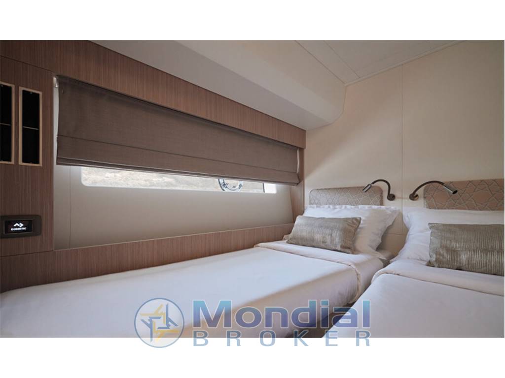 L’intera zona giorno è inondata di luce naturale. Un’ampia e alta porta laterale scorrevole in vetro consente di accedere al ponte e di godere di un panorama eccezionale. La visibilità si estende a poppa dello yacht, attraverso le finestre della cucina, e a prua, attraverso il parabrezza. Questa vista a 360º sul mare, quasi ininterrotta, garantisce un’esperienza immersiva assoluta. Dal ponte principale del PRESTIGE F-Line 5.7, un accesso privato permette ai suoi armatori di accedere alla propria cabina in modo semplice e discreto. Sapientemente posizionata, la suite armatoriale di prua garantisce una perfetta tranquillità, sia in mare, lontano dalla sala macchine, sia all’ormeggio, lontano dalle attività in banchina.Molto generoso lo spazio abitativo con pavimenti a filo e altezza in cabina davvero importante con un’illuminazione naturale attraverso le finestre dello scafo. Le linee curve conferiscono a questa suite armatoriale un’atmosfera raffinata con materiali pregiati, come il legno e i tessuti in tonalità naturali che contribuiscono ad aumentare lo charme di questo PRESTIGE F-Line 5.7. La cabina vanta inoltre un letto king size, un bagno interno con doccia separata e doppio lavabo, un vanity e un’ampia cabina armadio.Gli ospiti hanno a loro disposizione una magnifica cabina VIP con lo stesso design raffinato e anche qui, grazie alle generose finestrature, si gode di una vista sul mare magnifica. Il comodo letto queen size, posto in diagonale, contribuisce a dare una sensazione di spaziosità e facilita i movimenti. La terza cabina dispone di due cuccette singole e di un bagno separato, inoltre in caso di necessità lo stivaggio di poppa può essere trasformato in una cabina attrezzata per skipper con accesso separato.