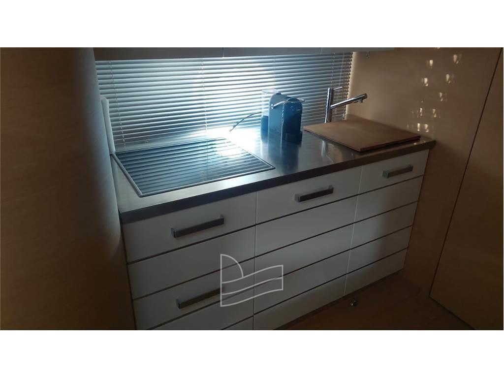 Antenna radar, Bussola, Comando motori elettronico, Contamiglia, Display, Ecoscandaglio, GPS, Joystick, Luci di navigazione, Pilota automatico, Plotter con antenna GPS, Radio VHF, Sedile Copilota.