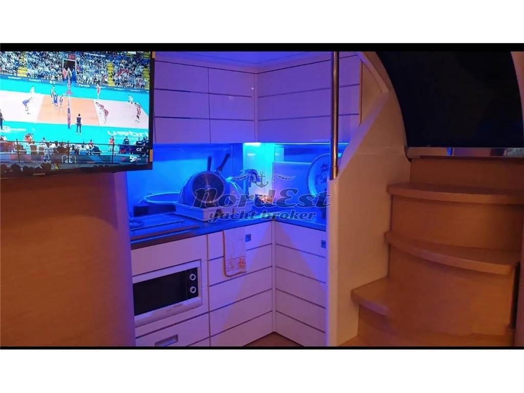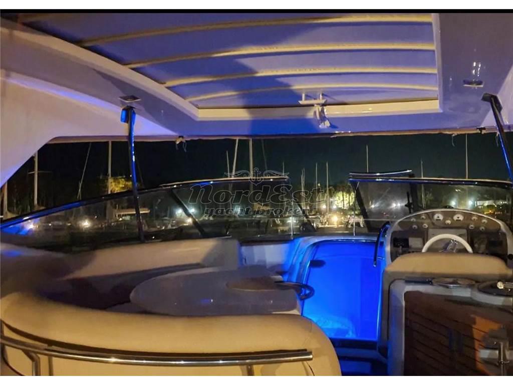 Gli accessori comprendono aria condizionata reversibile in tutti gli ambienti, generatore, impianto stereo con radiocomando esterno e interno, TV in tutti gli ambienti, antenna satellitare, luci interne a LED, luci esterne hard top multicolor a LED, luci di cortesia a LED e luci subacquee a poppa e laterali.