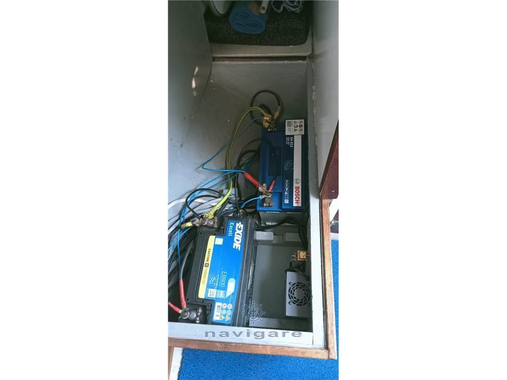 Allarme motore, Ancora, 2 Batterie, Bussola, Caricabatterie, Doccia esterna, Ecoscandaglio, GPS, Luci di navigazione, Piattaforma, Pompa di sentina automatica, Pompa di sentina manuale, Presa 220V banchina, Radio VHF, Salpa Ancore Elettrico, Scaletta da bagno