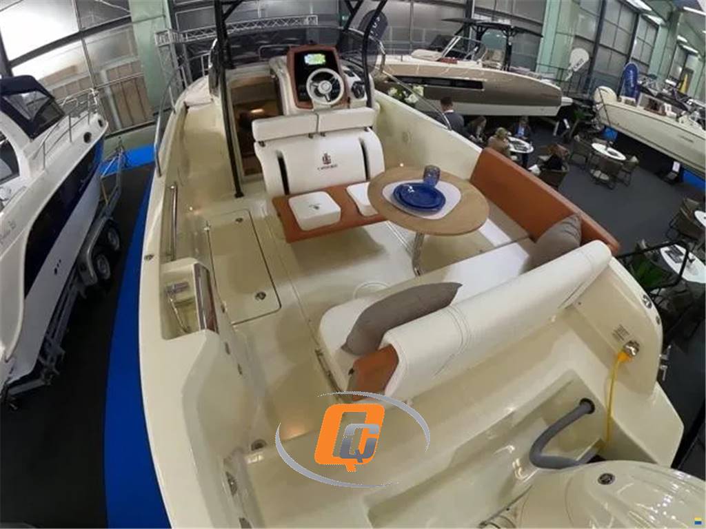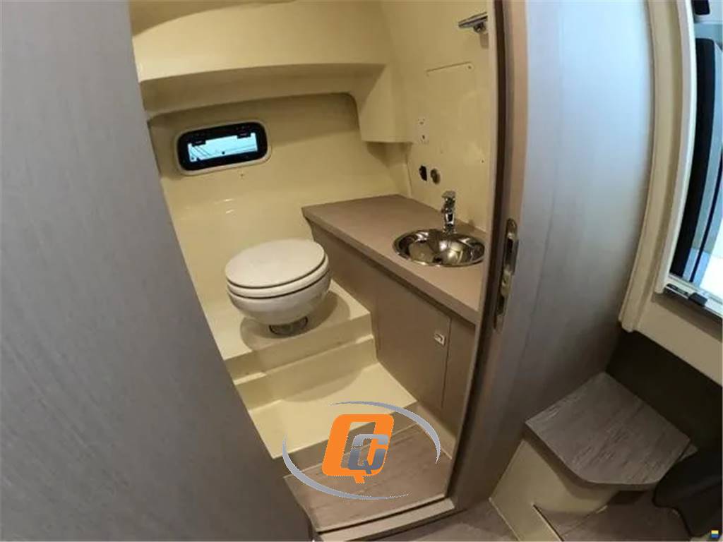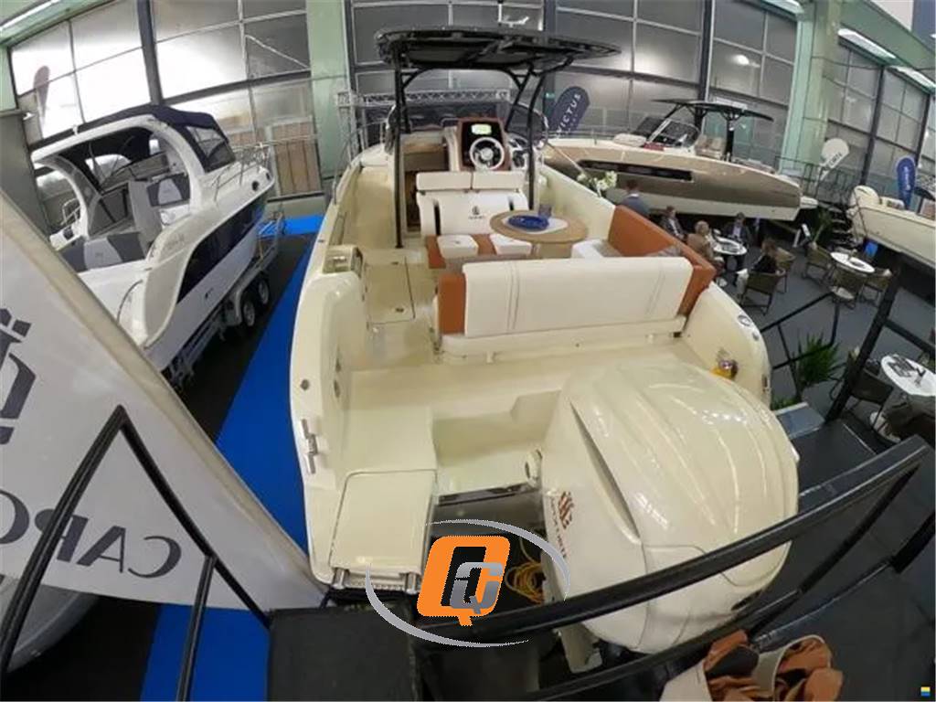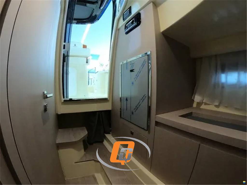 Model year 2023. Imbarcazione nuova, DEMO! Motore fuoribordo Yamaha da 300 CV, cabinato di lusso. Il colore della barca è Personal White con cuscineria color crema e dettagli color cognac. Garanzia motori ancora da attivare. Utilizzata solo per foto catalogo. Visibile in showroom a Lonato del Garda. Possibilità di permuta. È possibile acquistarla in REVERSE CHARGE (IVA A ZERO) se acquistata tramite società. Accessori • Altoparlanti • Bimini: a scomparsa • Cuscineria di prua • Display • Doccia esterna, Elica di prua - bow thruster, Frigorifero interno • GPS: Garmin 923 xs • Lavandino nel Pozzetto • Scaletta da bagno: a scomparsa • Stereo • Tavolo pozzetto: teak amovibile • WC marino elettrico.