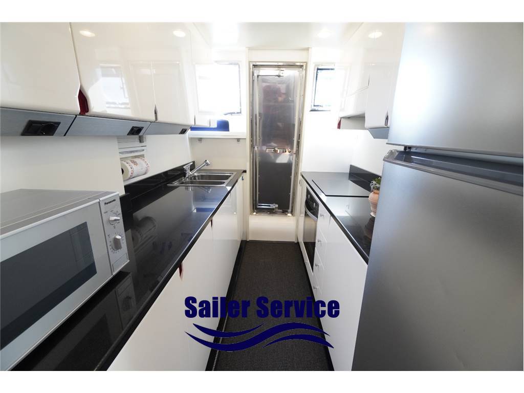 Elica di prua, passerella idraulica, lavasciuga, lavastoviglie, tv sat, stereo, frigo anche su fly, ice maker, freezer, forno e cucina elettrici,