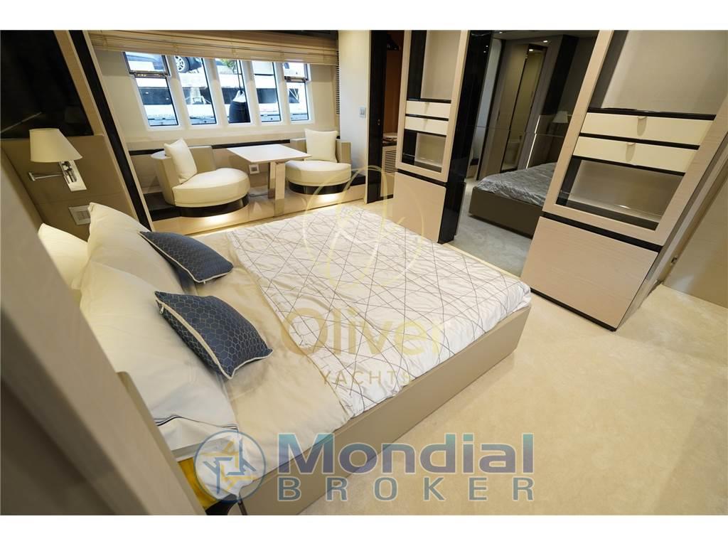 Sottocoperta, il layout a 4 cabine rappresenta uno dei grandi punti di forza di questa unità. La cabina armatoriale full beam è una vera suite privata, completa di area dressing e vasca idromassaggio, una dotazione rara in questa fascia di lunghezza. Un plus che alza nettamente il posizionamento della barca.