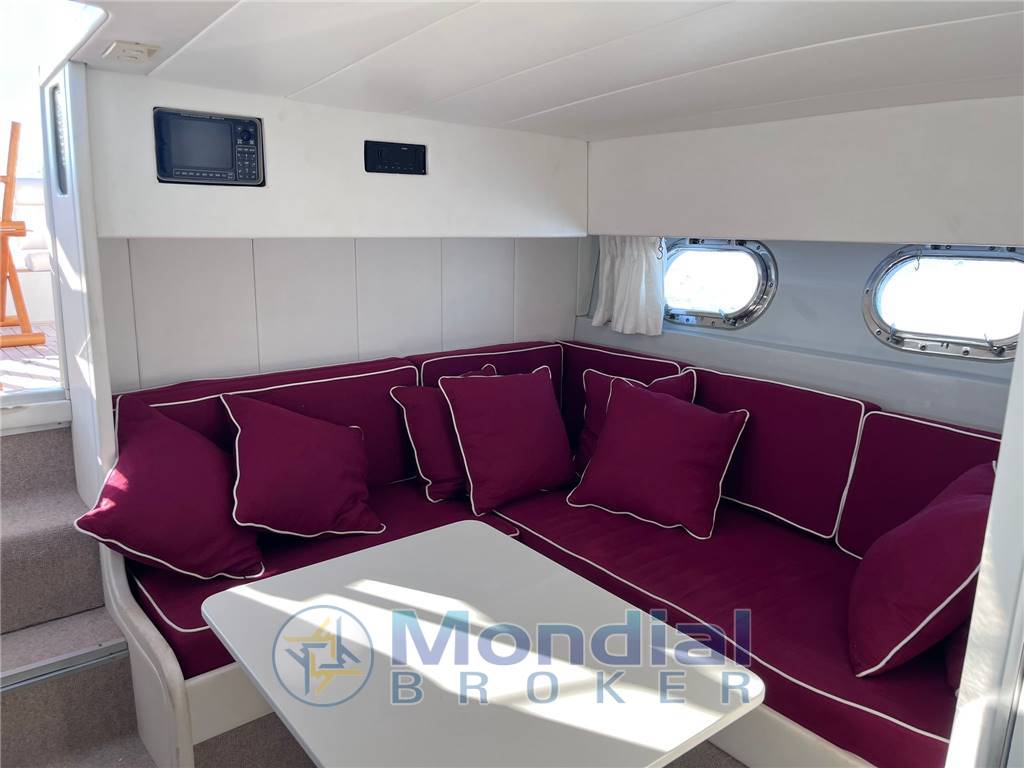 Autopilota Raymarine con attuatore idraulico – Ecoscandaglio Raymarine Serie 60 – Radar Furuno NavNet – GPS/Plotter Furuno GP-32 WAAS Navigator – GPS Seiwa Barracuda compatibile C-MAP – VHF Shipmate RS 8100 – Bussola Ritchie – Sumlog HS elettronico – Generatore – Caricabatterie Victron – Ripartitore di carica Le Marche Constavolt – Pannello solare 175W con regolatore MPPT – Monitor batteria Victron Bluetooth – WC marino elettrico Jabsco – Autoclave Gianneschi con vaso di espansione – 3 pompe di sentina (manuali e automatiche) – Prese a mare nuove con valvole e raccordi – Verricello salpa ancora ad asse verticale – Ancora con catena zincata – Estintori – Cinture di salvataggio, salvagente anulare, boetta luminosa – Chiusura emergenza carburante – Luci di via, cortesia, musone – Tavolo pozzetto in teak con gamba doppia – N2 sedie in teak da pozzetto – Cuscineria completa esterna – Tendalino – Seduta timoniere su misura con frigo inox Isotherm e subwoofer – Piattaforma originale Magnum Marine con scaletta originale – Pannello elettrico Magnum Marine AC/DC – Impianto stereo Fusion/Hertz con subwoofer Signature e controlli wireless – Frigorifero interno ed esterno
