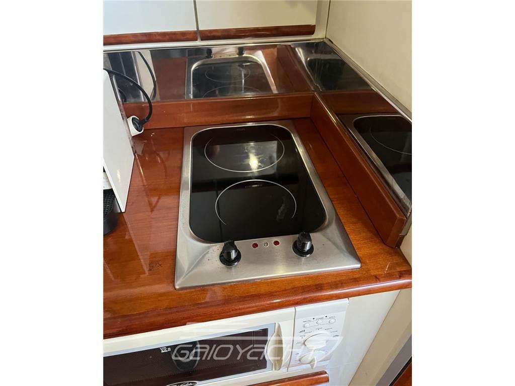 Bimini, Boiler, Cassaforte, Cinture di salvataggio, Cuscineria completa, Dotazioni di sicurezza entro 50 miglia, Frigorifero esterno, Frigorifero interno, Impianto TV, Microonde, Pavimento interno in legno, Piastra in vetroceramica, Prese interne 12v, Prese interne 220v, Radio AM/FM, Stereo, Telo copriconsolle, Tendalino, WC marino elettrico