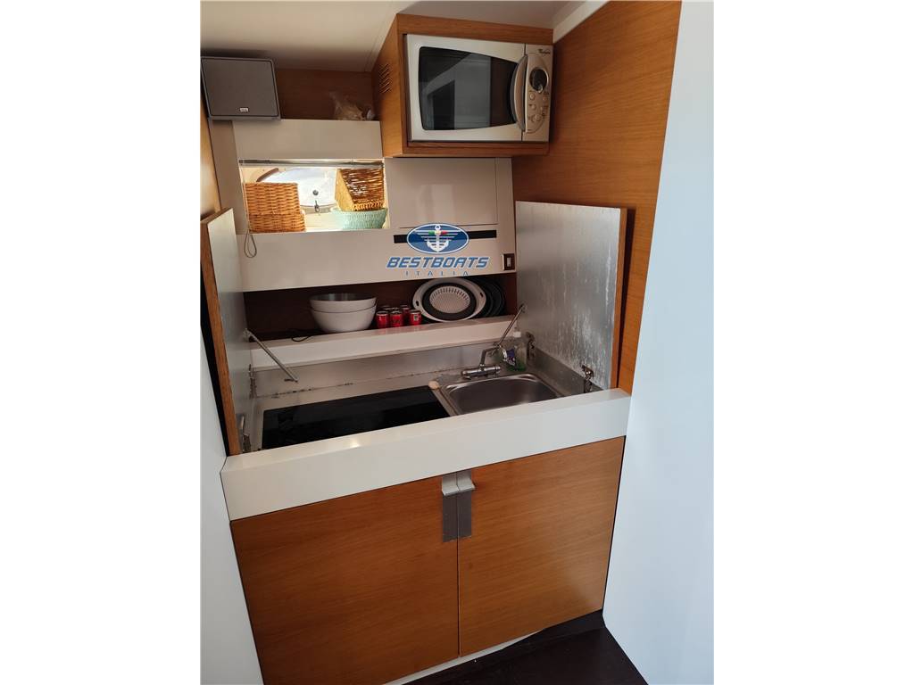 Generatore Kohler3,5 kW, aria condizionata, passerella idraulica Besenzoni, scaletta bagno, elica di prua, boiler, autoclave, verricello elettrico, cuscineria prendisole completa prua e poppa tendalino, tavolo esterno, lavello esterno a scomparsa, frigo interno ed esterno, boiler su scambiatore, impianto 220v con carica batterie , dotazioni di sicurezza, impianto pompe di sentina