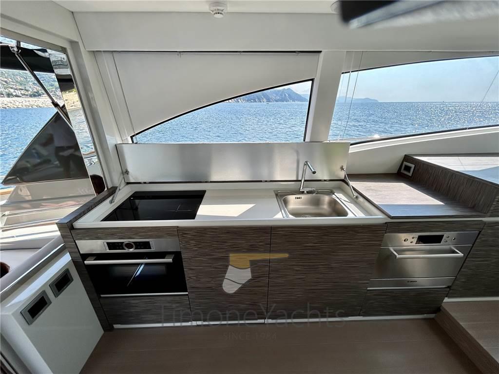Il suo tocco grigio chiaro la fa risplendere delicatamente in ogni baia e il pozzetto custom rivela tutto il suo comfort nelle due chaise longue vista mare. Il ponte principale è un vero e proprio open space dove l'interno/l'esterno si fondono perfettamente. Appartamento armatoriale nella parte anteriore con bagno privato, oltre a due cabine ospiti a centro barca che condividono una camera per la testa. Cabina equipaggio a poppa. La nave perfetta per le tue fughe in pieno stile.