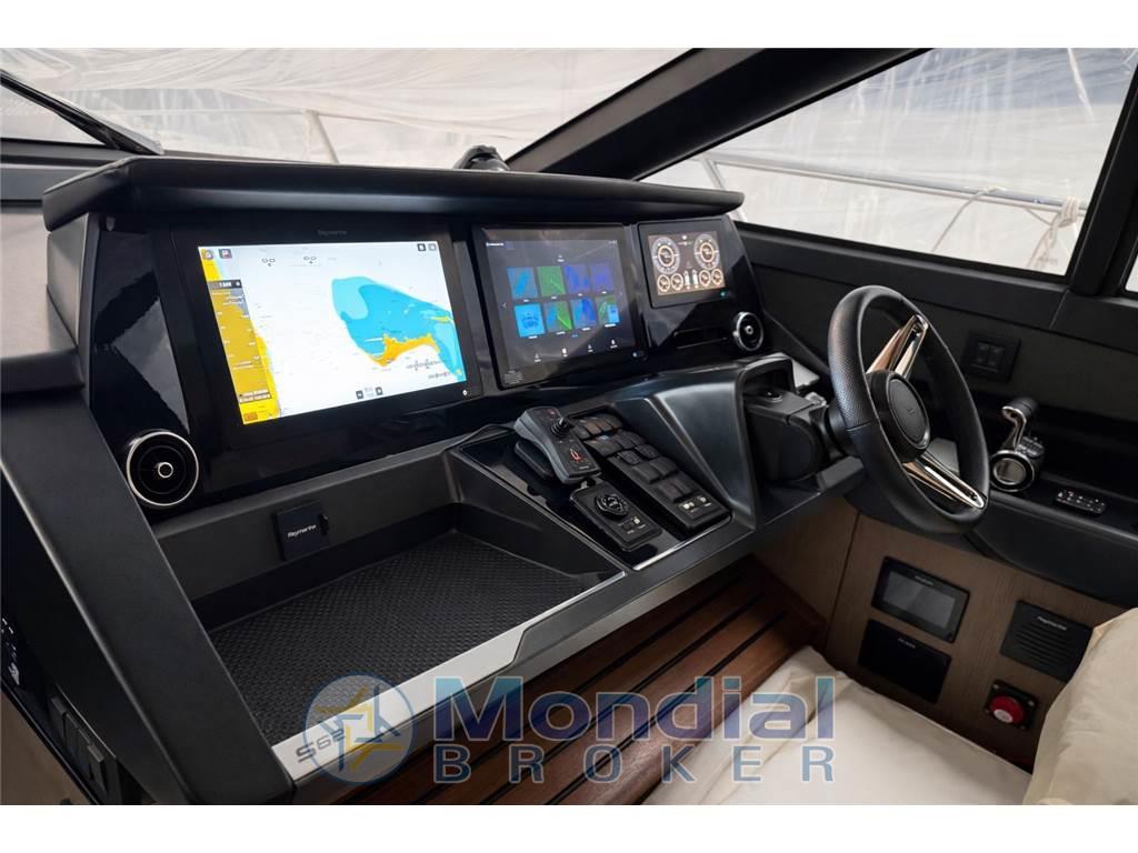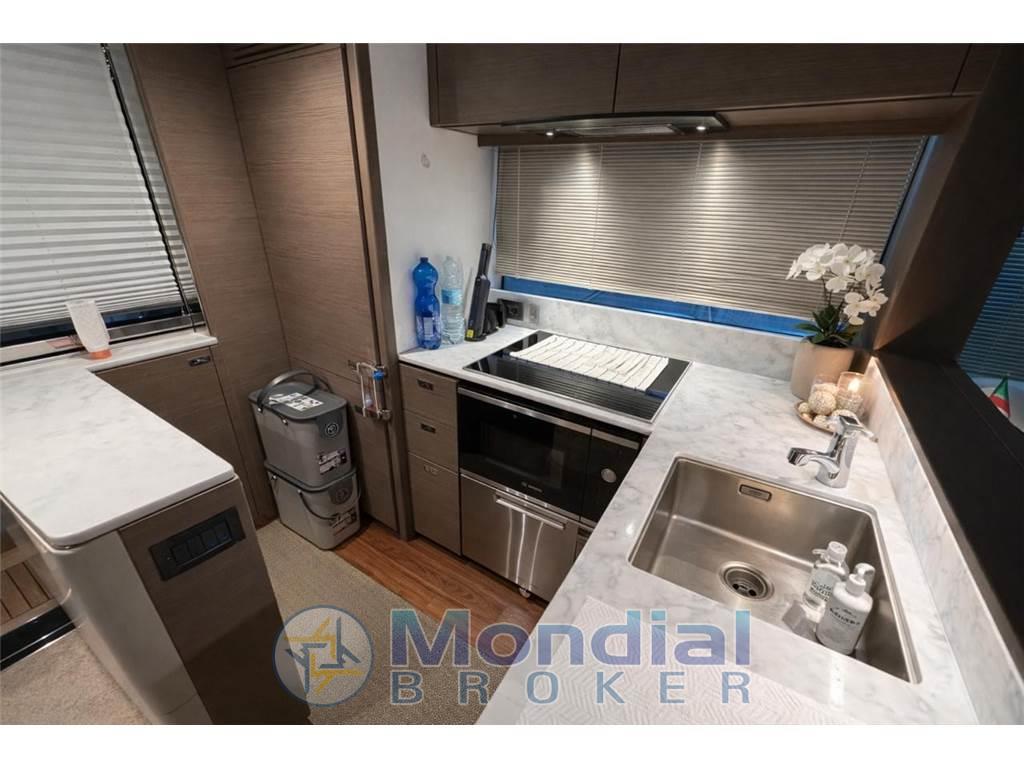 Allarme motore, Allarme sentina, Doccia esterna, Elica di poppa - stern thruster (Proporzionale), Elica di prua - bow thruster (Proporzionale), Faro orientabile, Flap elettrici, Garage per tender, Hard top, Impianto antincendio, Luci di cortesia, 4 Luci subacquee, Passerella, Piattaforma (Affondabile), Pozzetto Teak, Scaletta da bagno, Stabilizzatori (Seakeeper NG9), Tavolo pozzetto (Elettrico), 2 Winch tonneggio di poppa.