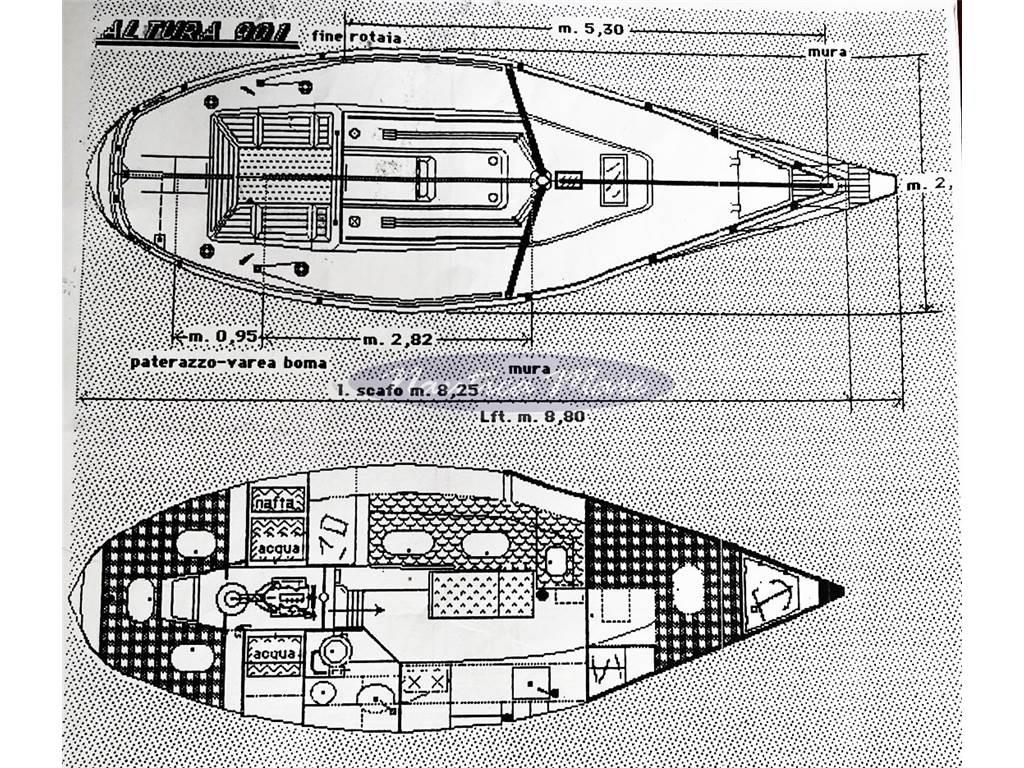 Armo Sloop ; Randa Semi nuova ; Vele di prua: Genoa semi nuovo con rollafiocco Bamar ; 6 Winch + copri winch di colore azzurro ; Lazy Jack ; Lazy bag ; Gennaker con calza