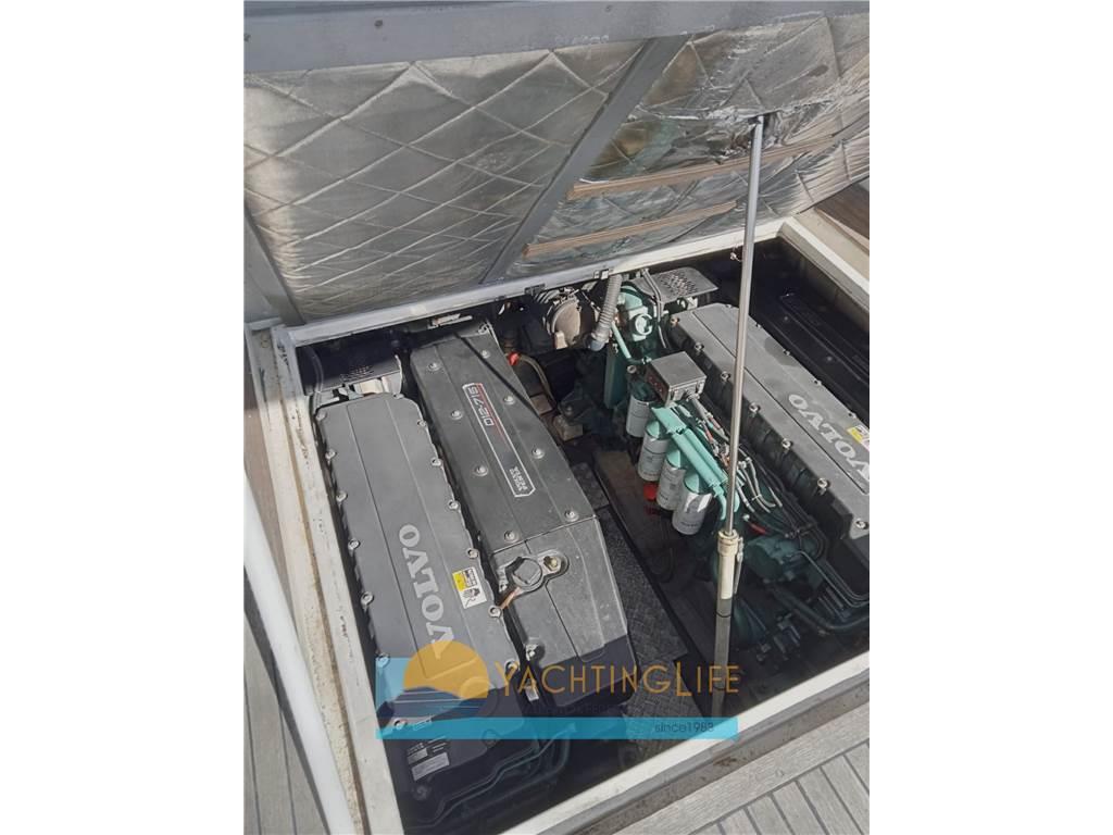 Allarme motore, Allarme sentina, Ancora, Angolo barra, Antenna radar, Autoclave, Autogonfiabile, Batterie, Bussola, Caricabatterie, Doccia esterna, Ecoscandaglio, Elica di prua - bow thruster, Faro orientabile, Flap idraulici, GPS, Indicatori Flaps, Luci di cortesia, Luci subacquee, Passerella (a scomparsa), Pilota automatico, Pompa di sentina automatica, Pompa di sentina elettrica, Porta ingresso, Pozzetto Teak, Presa 220V banchina, Radar, Radio VHF, Salpa Ancore Elettrico, Scaletta da bagno, Tavolo pozzetto, Tender, Tromba, Winch tonneggio di poppa