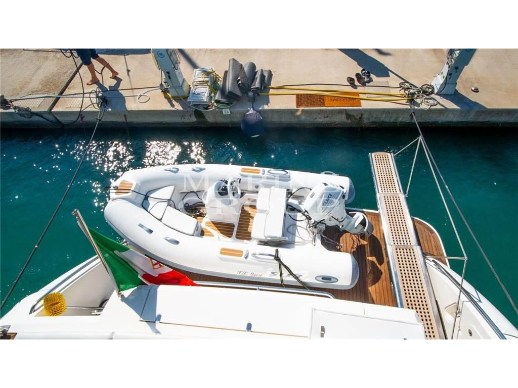 Refitting completo by Abitami nel 2024. Grande salone con divani in pelle - Cucina sul ponte principale completa di capiente frigo/congelatore, forno e lavastoviglie - Dinette con tavolo da pranzo interna - Cabina armatoriale a centro barca con letto matrimoniale e bagno ensuite - Cabina VIP a prua con letto matrimoniale e bagno ensuite - Cabina ospiti con letti singoli in piano e accesso diretto al bagno - Cabina ospiti con letti a castello - Bagno cabine ospiti completo - Cabina equipaggio a poppa con due posti letto e bagno separato completo.