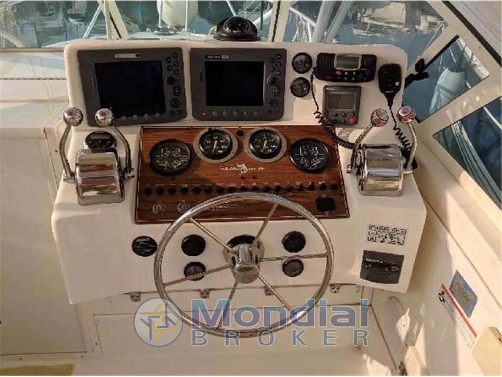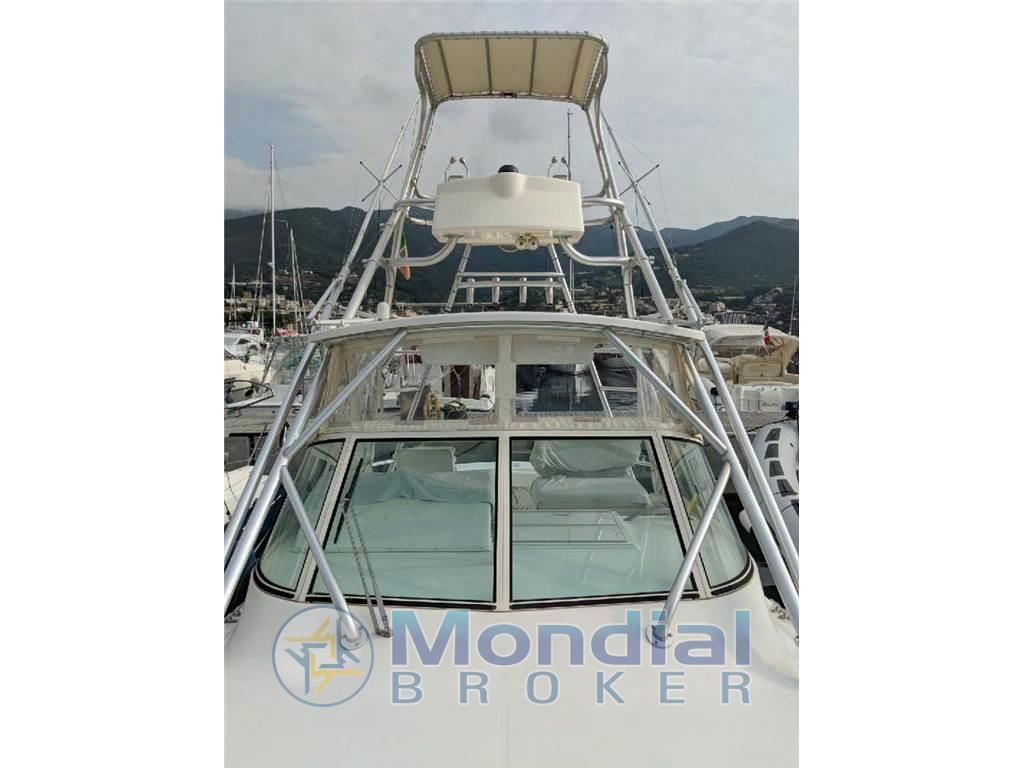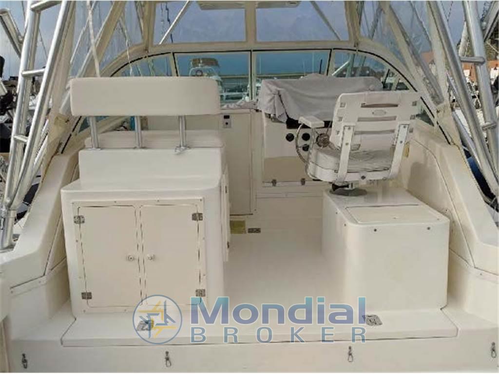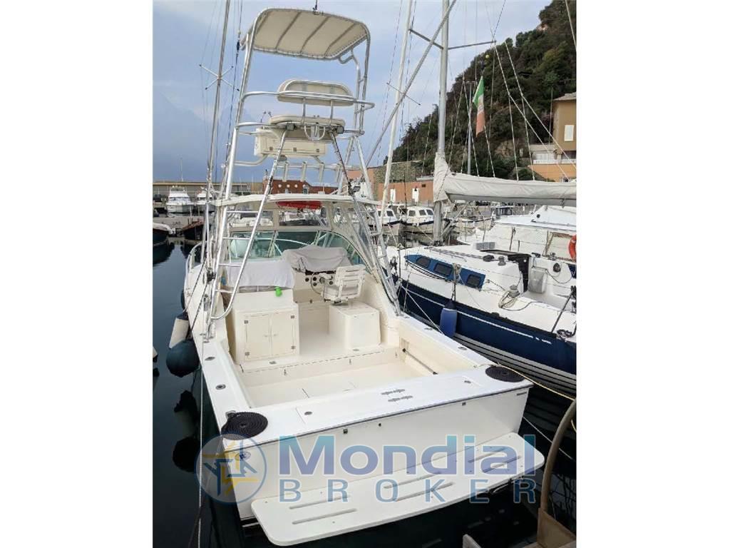 Barca americana progettata per la pesca d'altura con ampio pozzetto e tuna tower.