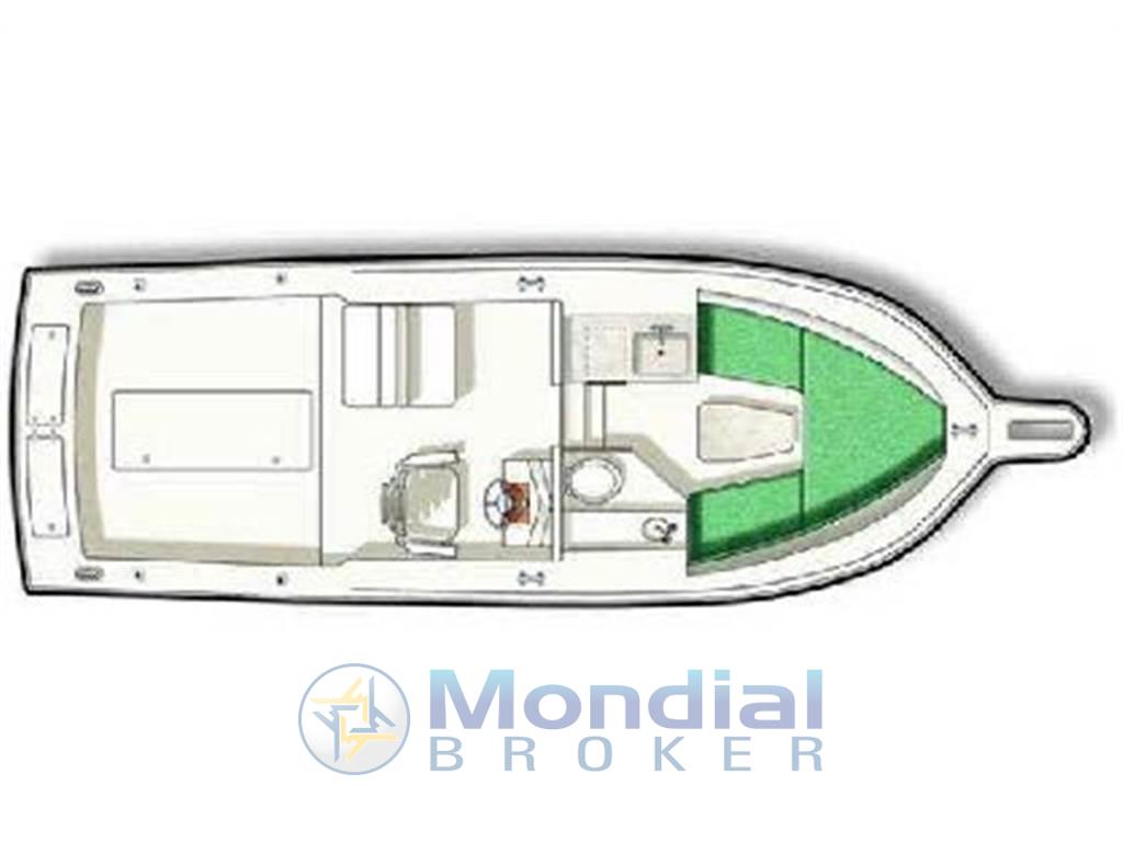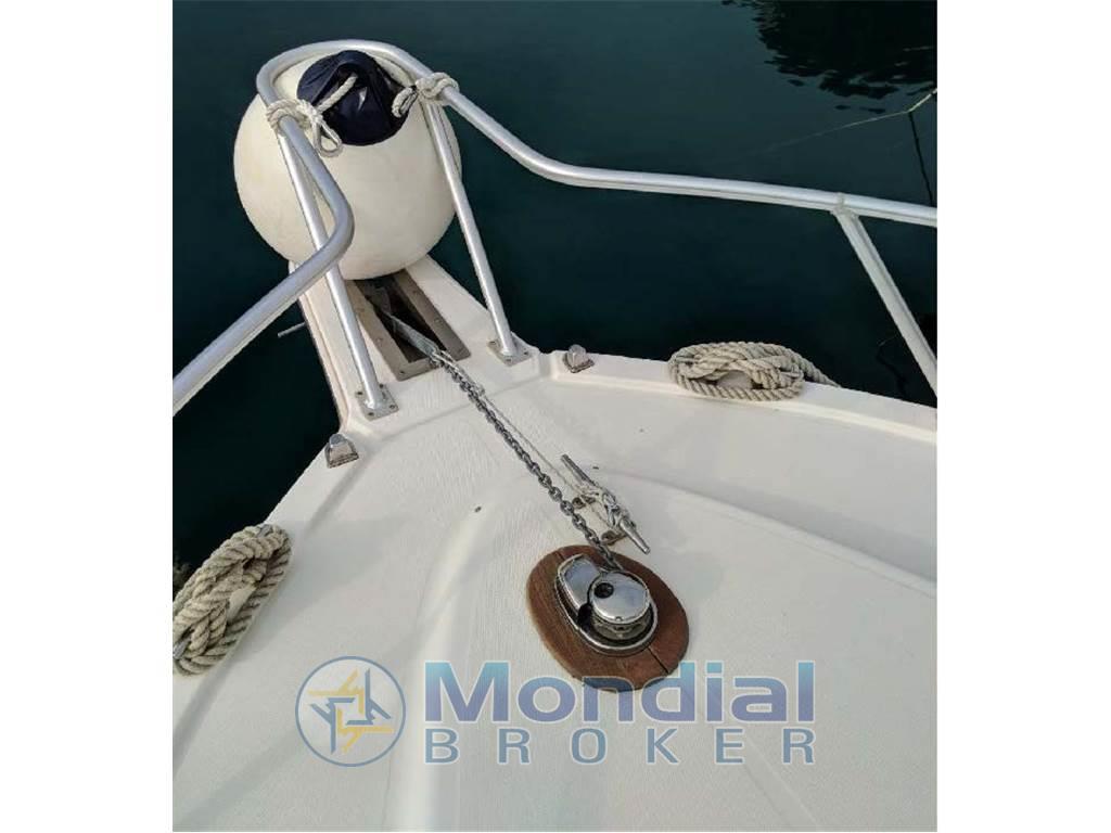 tuna tower con seconda guida, vasca per esca viva e pescato, cuscineria completa, tendalini trasparenti a chiusura, salpa ancora elettrico,