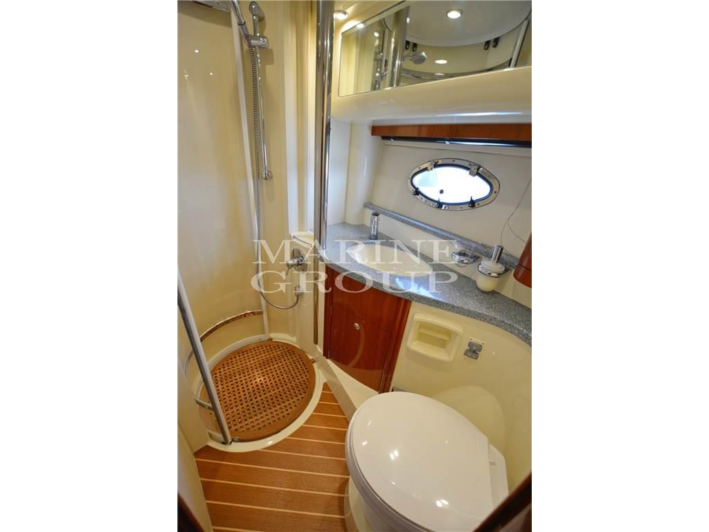 Layout composto da salone con divani in pelle e tv - Cucina equipaggiata con frigo, forno microonde, piastra vetroceramica - Cabina armatoriale a prua con bagno ensuite e doccia separata - Cabina ospiti con letti in piano e bagno ensuite con doccia separata e doppia porta di accesso anche dal corridoio