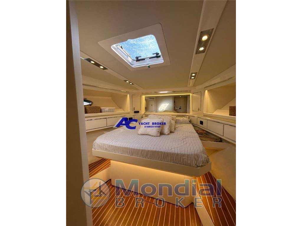 Generatore Coelmo con comando in plancia (2024), aria condizionata, elica di prua (sbarco e revisione 2024), passerella idraulica a scomparsa, boiler, autoclave (2025), verricello elettrico (2025), scaletta bagno, pozzetto e pedana di poppa in teak (nuovo massell2025), tavolo pozzetto, tender lift, fari led subacquei, cuscineria prendisole completa, tendalino elettrico (2024) con copertura parabrezza e laterali, inverter (2024), mobile cucina esterno, frigo interno ed esterno (2025), tender con motore f/b 4CV (2022), manette elettroniche ZF,caricabatterie 2025 dotazioni di sicurezza