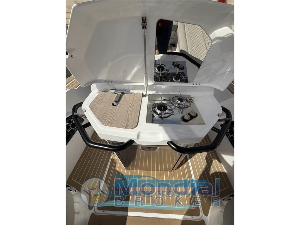Allarme motore, Alternatore, Ancora, Autoclave, Batterie, Bitte Abbattibili, Bussola, Camminamenti laterali in teak, Caricabatterie, Corrimano, Display (Yamaha 9 pollici), Doccia esterna, Ecoscandaglio (Garmin), Fissaggio dell’ancora, GPS (Garmin 1223XSV), Joystick (Yamaha), Lavandino nel Pozzetto, Luci di cortesia, Luci di navigazione, Mappe e guide, Monitor dei consumi, Parabordi, 2 Piattaforma, Pompa di sentina automatica, Pompa di sentina elettrica, Ponte in teak, Pozzetto Teak, Presa 220V banchina, Quadro comandi, Radio VHF, Salpa Ancore Elettrico, Scaletta da bagno, Sedile Copilota, Tavolo (elettrico), Tromba, T-Top