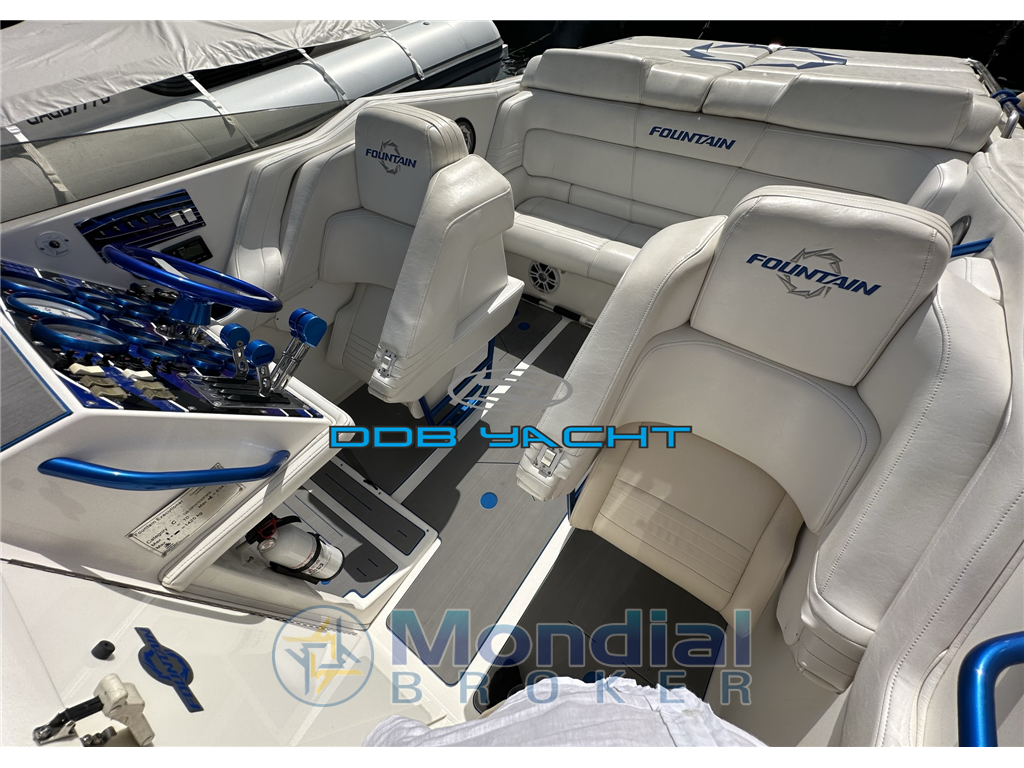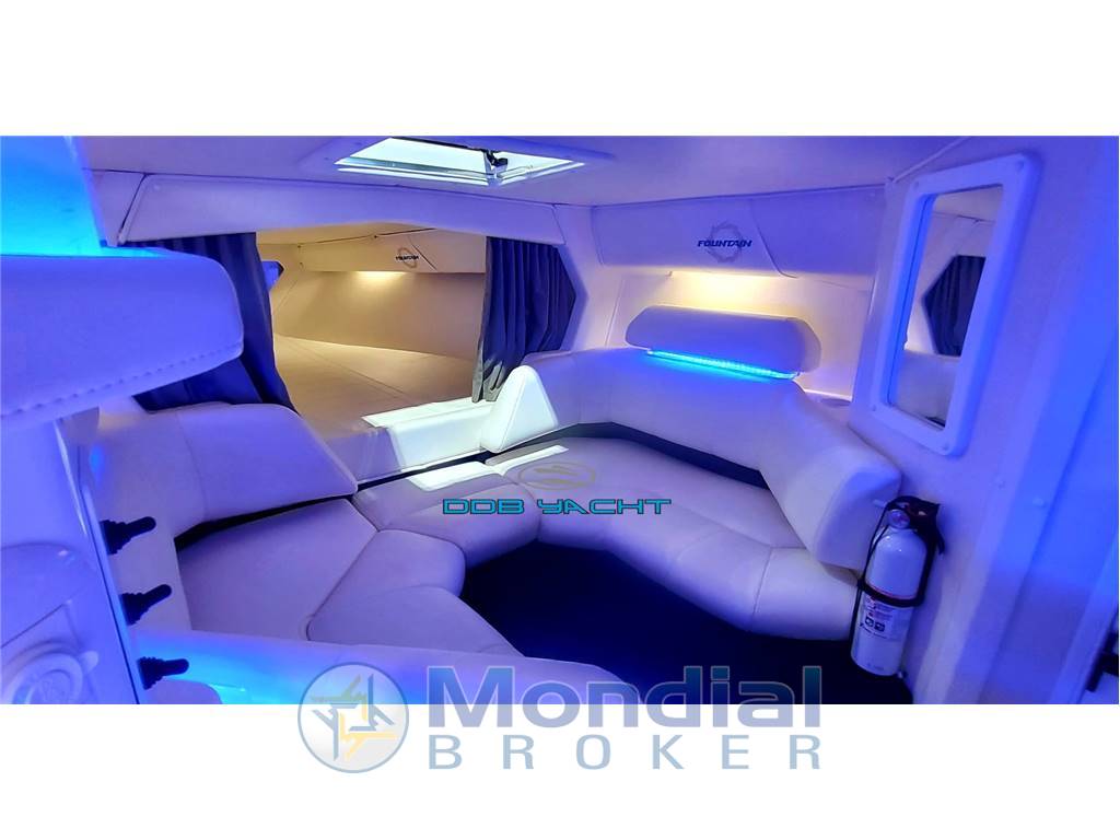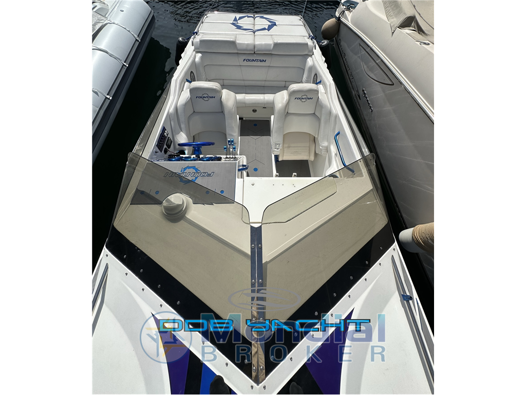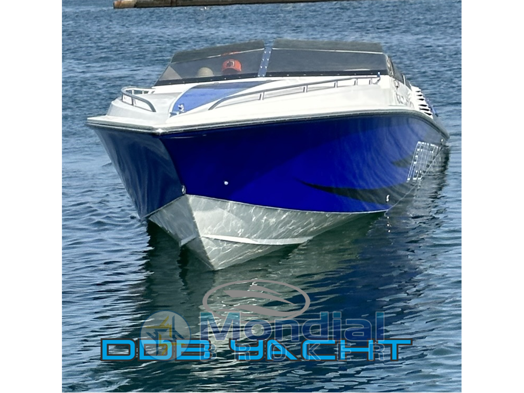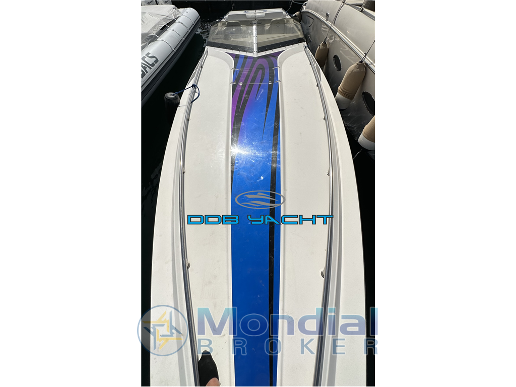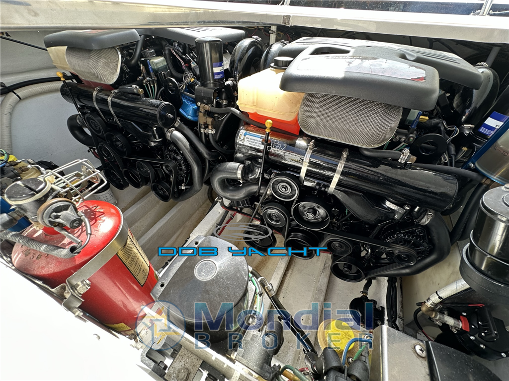 dotazioni di bordo, telo copri pozzetto, barca aerografata, eliche lappate, alzavano motore elettrico con doppio pistone, sedute pilota e co pilota regolabili elettricamente, ventilatori in cabina, estintore sala macchine,