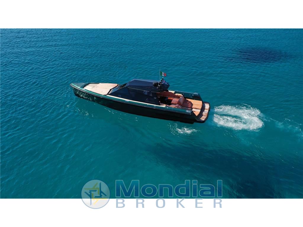 Il WP 47’ offre un’ampia area di coperta, al tempo stesso spaziosa e ben protetta, che include la console di navigazione e timoneria e il cockpit conviviale. La zona living centrale, ben riparata e ombreggiata, è dotata di bimini top e di un tavolo da pranzo con comode sedute per sei–otto ospiti. Le aree di prua e di poppa sono attrezzate con prendisole, mentre la scaletta bagno, azionata idraulicamente, è elegantemente integrata e nascosta nello specchio di poppa. L’ampia coperta, completamente libera da ostacoli, è rivestita in teak, garantendo sicurezza e comfort sotto i piedi. Gli spazi interni prevedono una spaziosa cabina armatoriale a prua, con letto matrimoniale a tutta larghezza, e una cabina singola sul lato di dritta. Gli interni, sobri ed eleganti, comprendono una cucina completamente attrezzata e un bagno con lavabo, WC e doccia. Il design combina l’utilizzo della fibra di carbonio con il teak naturale, armadiature e soffitti verniciati in bianco, creando un ambiente luminoso e contemporaneo. I due motori diesel Volvo Penta IPS 600 da 435 Hp (del 2022) consentono una velocità di crociera superiore ai 30 nodi, con consumi contenuti. A seguito di un importante refit effettuato nel 2022, lo yacht è stato mantenuto in condizioni impeccabili, con aggiornamenti continui e interventi di miglioramento annuali eseguiti secondo i più elevati standard qualitativi.