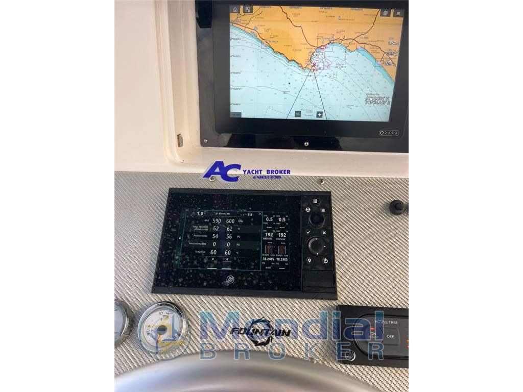 Autoclave, verricello, frigo, casse acque nere, tenda araba, t-top in acciaio con portacanne, imp. 220 V con caricabatterie, trim automatici, centralina controllo motori Mercury con disply, flaps idraulici con indicatori Bennet