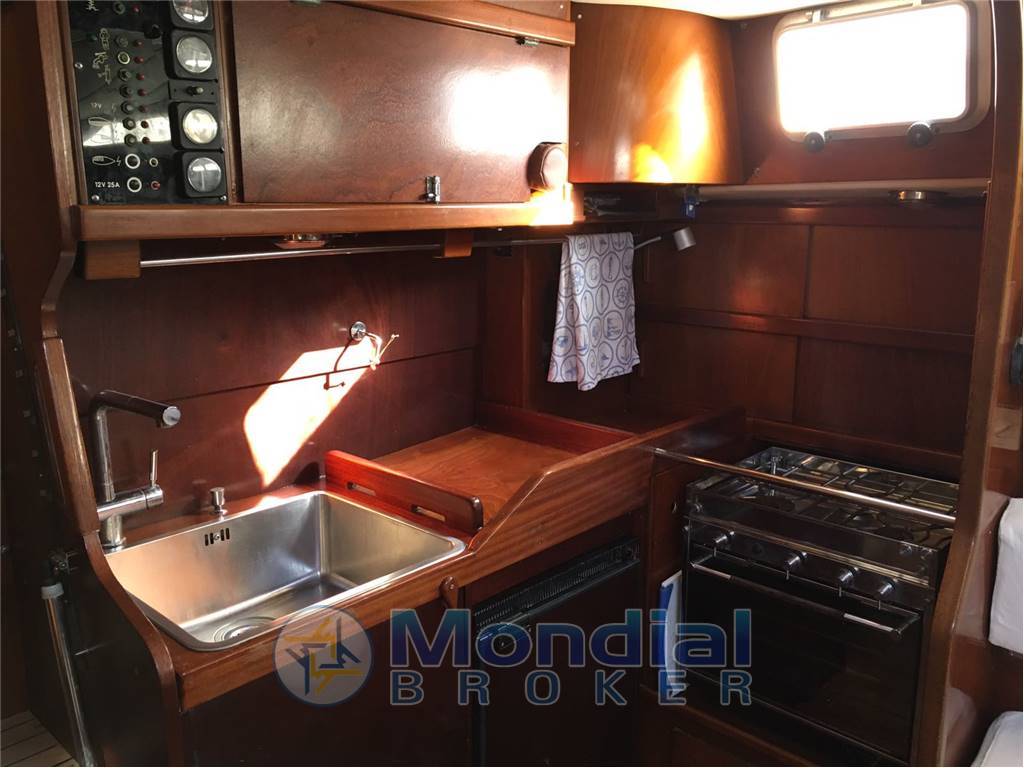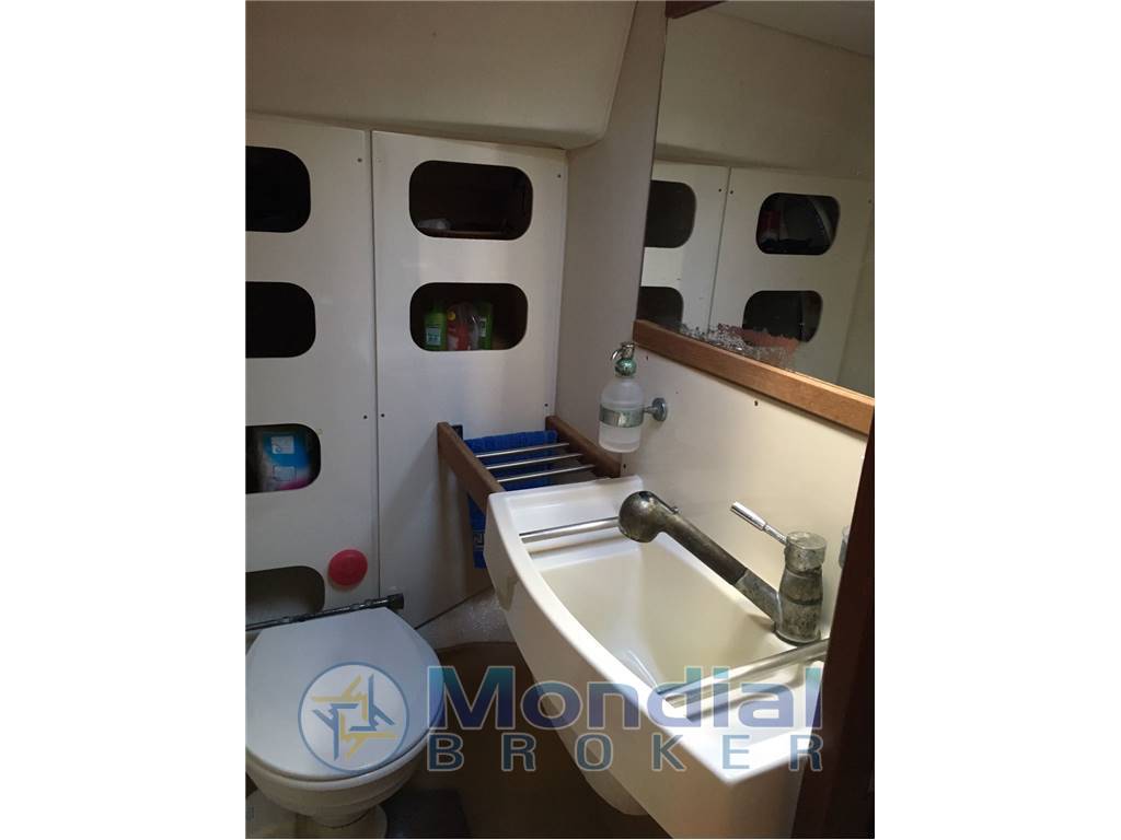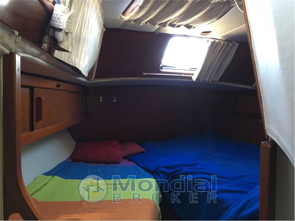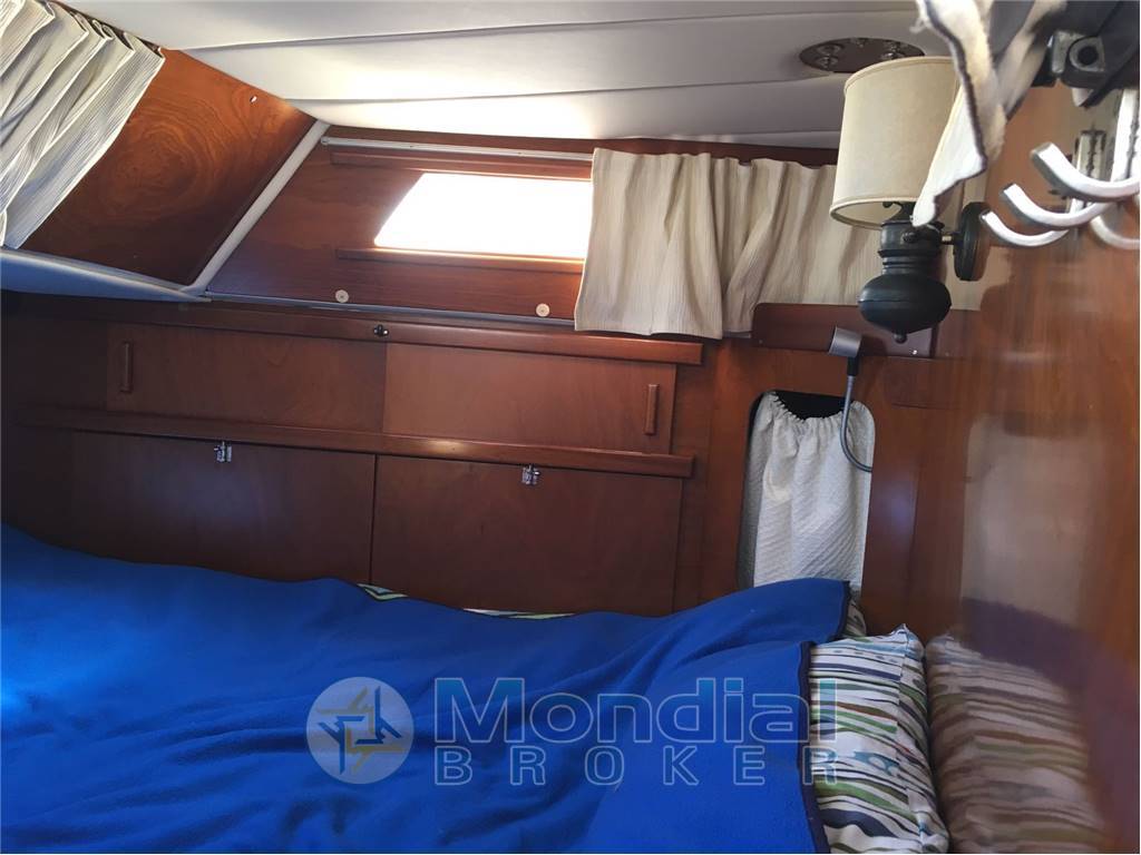 Cabina armatoriale a poppa, cabina ospiti a prua, 3 letti singoli,1 bagno con wc elettrico con bidet 2007, cucina 3 fuochi, forno, frigo verticale, tutti 2007,riscaldamento Eberspac ( canalizzazione 2009 ), tappezzerie, moquette,cuscineria, rivestimento cielo e pareti 2007, autoclave e boiler 2007.