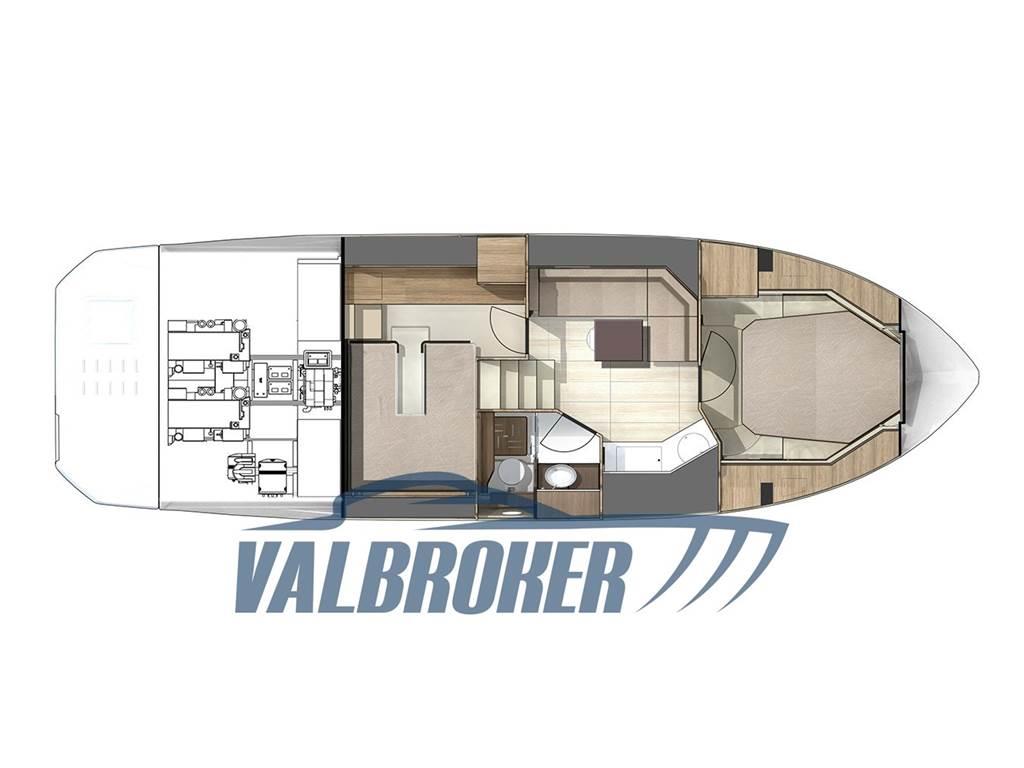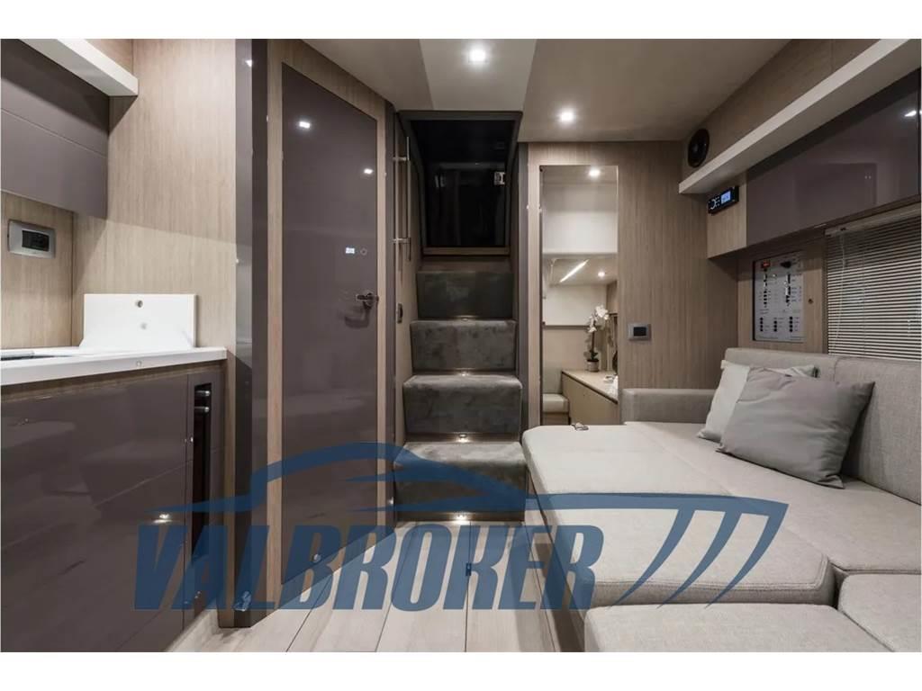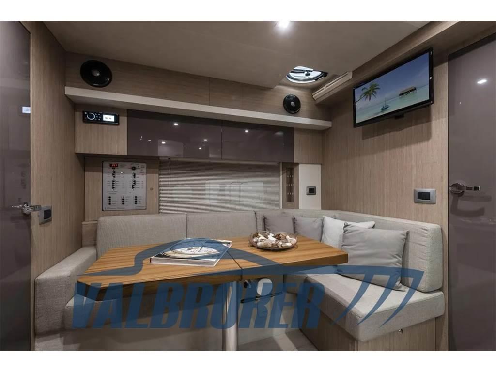 Cruiser sportivo del 2023 equipaggiato con 2x270 HP Volvo Penta D4 turbo diesel common rail con pochissime ore di moto! Sotto coperta è presente una cabina armatoriale a prua, una cabina ospiti con due letti in piano, una dinette trasformabile e un bagno con doccia.