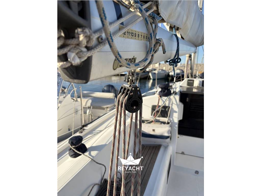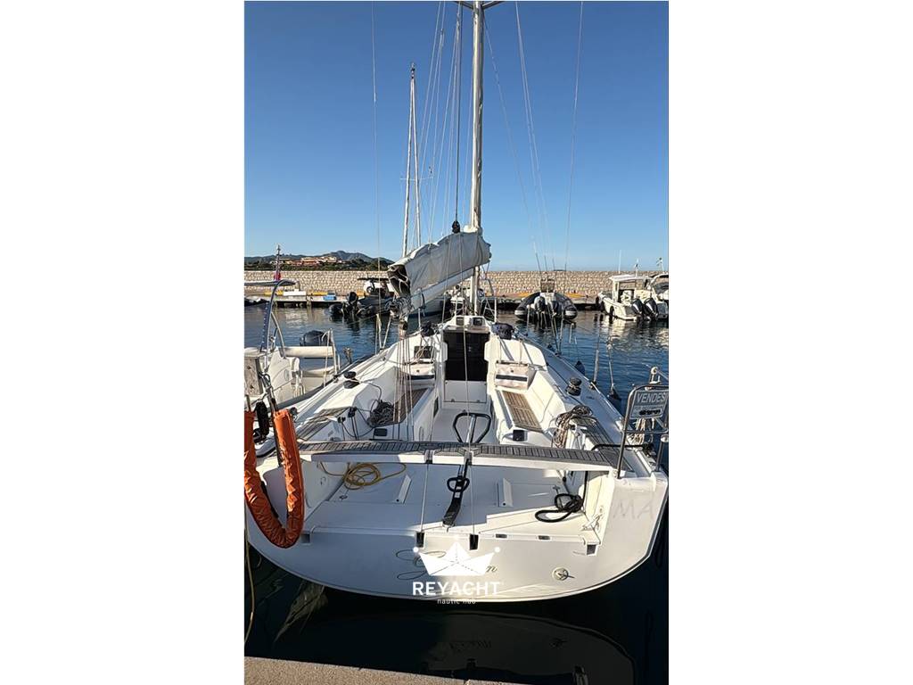 Grâce à sa carène sportive, sa quille fixe et ses doubles barres à roue, ce voilier offre une grande