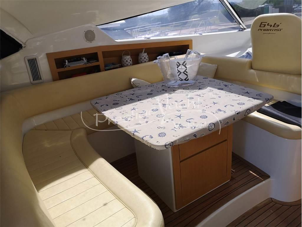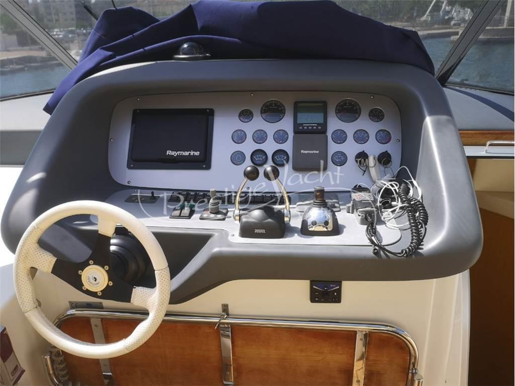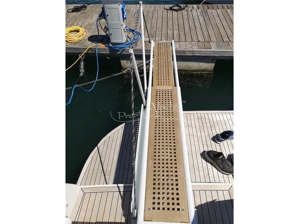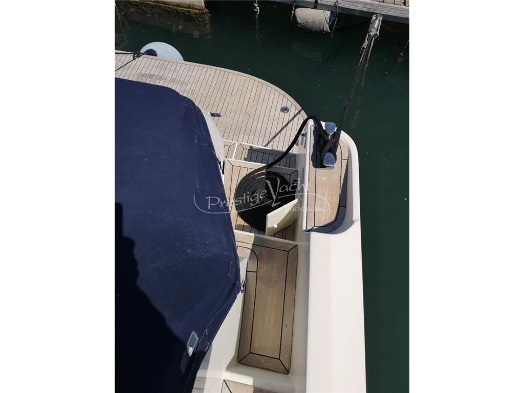 Allarme motore, Autoclave, Camminamenti laterali in teak, Caricabatterie, Doccia esterna, Elica di prua, Faro orientabile, Flap idraulici, Hard Top, Impianto antincendio, Indicatori flaps, Luci subacquee, Passerella (idraulica a scomparsa), Piattaforma, 3 Pompa di sentina automatica, 1 Pompa di sentina manuale, Porta di ingresso, Pozzetto in teak, Presa 220V banchina, Rollbar, Salpa ancora elettrico, Tavolo in pozzetto, Winch tonneggio di prua Cucina, Frigorifero esterno, Frigorifero interno, Piastra in vetroceramica Boiler, Clima reversibile, Impianto acque nere, Prese interne 12V, Prese interne 220V, 2 Wc marino elettrico Altoparlanti, Digitale terrestre, Impianto TV, Stereo, TV Angolo barra, Bussola, Comando motori elettronico, Ecoscandaglio, GPS, Pilota automatico, Plotter Copripozzetto, Cuscineria completa, Cuscineria di poppa, Cuscineria di prua, Cuscineria pozzetto, Prendisole, Telo copri consolle, Tendalino (poppa)