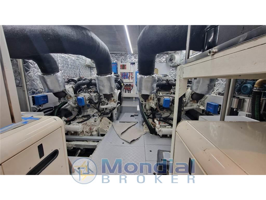Imbarcazione che ha appena terminato un refit totale (verniciatura, impianto elettrico, carena a zero, sostituzione motori con n. 2 CAT da 1.670 hp ciascuno, pinne stabilizzatrici, tender lift con pedana di poppa maggiorata, poppa ricostruita con scale, ecc).