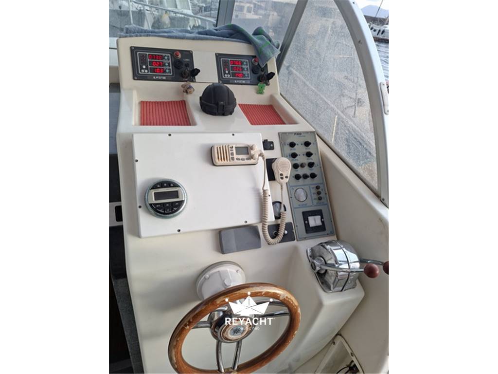 Zeta Group F300 del 1999, natante di 9,30 metri, motorizzata con 2x Yanmar 182hp linea d’asse, sinonimo di affidabilità, bassi costi di gestione e manutenzione semplice.