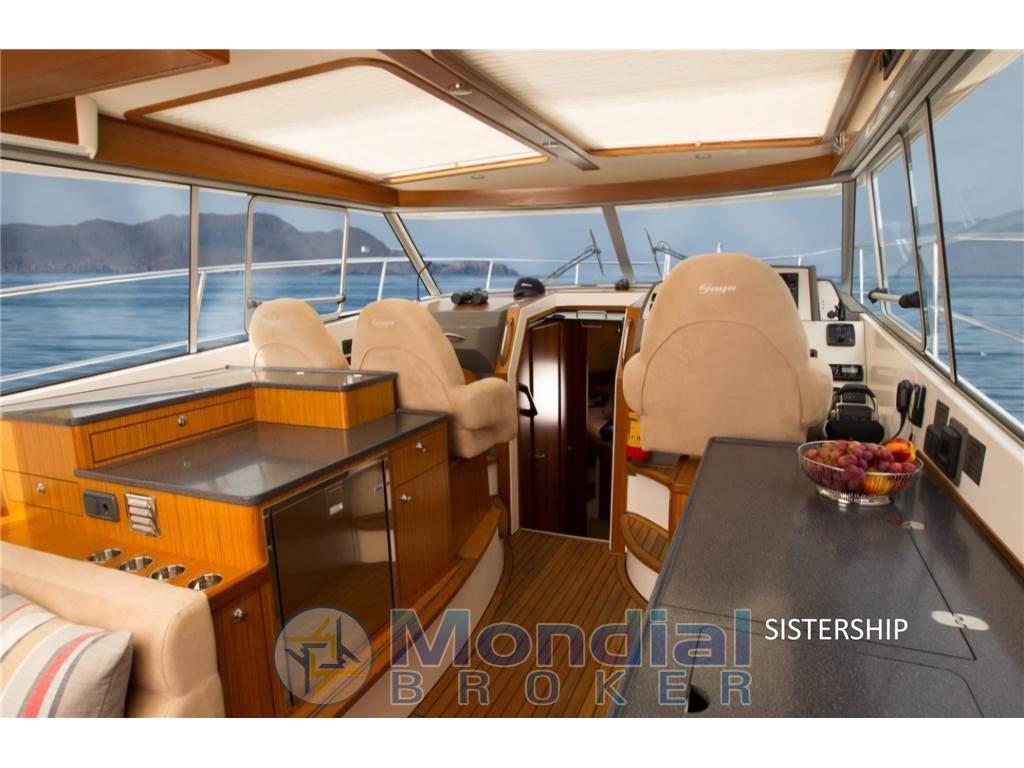 Il SAGA 390 HT è un modello open HT con un'ampia area pozzetto sul ponte principale e alloggi spaziosi e confortevoli sottocoperta. La cabina di prua, la cabina centrale e il bagno mantengono lo stesso layout, ma con ulteriori miglioramenti. L'imbarcazione monta un motore Volvo Penta D6 da 480 CV in linea d'asse ed elica e timone protetti. Lo scafo semi-planante infuso sottovuoto offre una navigazione morbida e confortevole con velocità massima fino a 27 nodi. Tutta la produzione avviene nel cantiere di Selje, in Norvegia, e la solida artigianalità caratterizza anche questo modello Saga.