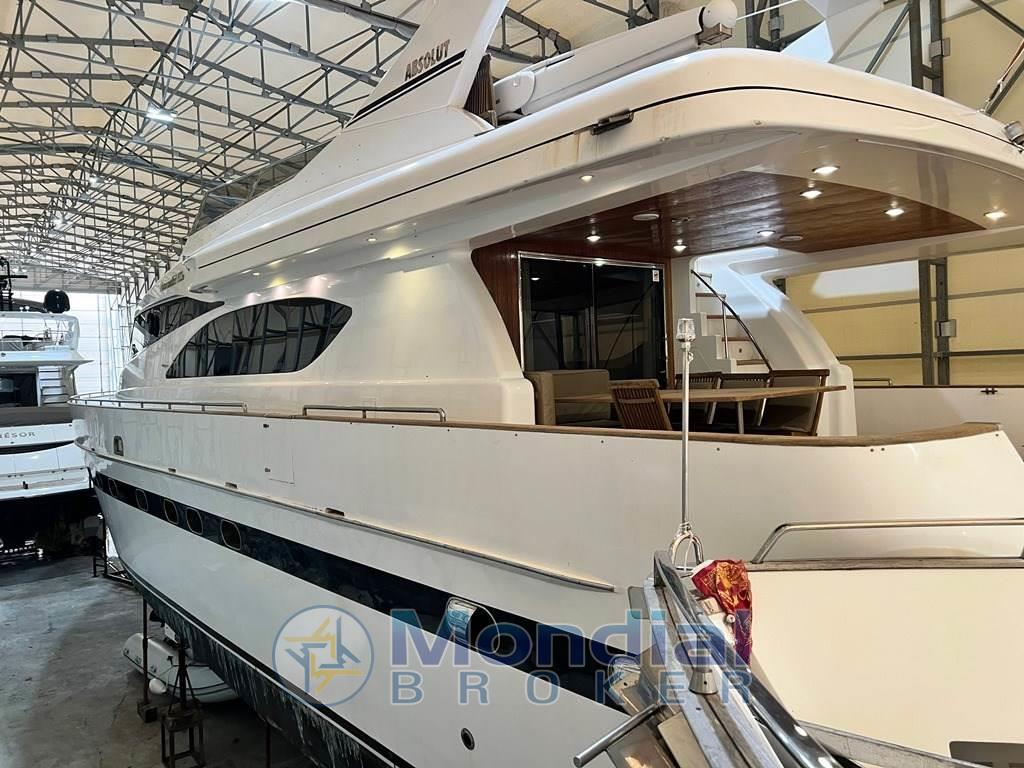 Allarme motore, Allarme sentina, Ancora, Angolo barra, Antenna radar, 2 Autoclave, Batterie, Bussola (+ fly), Camminamenti laterali in teak, Caricabatterie, Colorazione speciale, Contametri catena, Contamiglia, Doccia esterna, Doppia timoneria, Ecoscandaglio (+ fly), Elica di poppa - stern thruster, Elica di prua - bow thruster, Faro orientabile (elettrico), Flap idraulici, GPS (+ fly), Gruette per tender su fly (opacmare), Impianto antincendio, Indicatori Flaps, Lavaggio catena, Log, Luci di cortesia, Passerella (Idraulica telescopica), Piattaforma (abbattibile), Pilota automatico (+ fly 2020), 2 Plotter con antenna GPS, Pompa di sentina automatica, Pompa di sentina elettrica, Porta ingresso, Porta laterale, Pozzetto Teak, Presa 220V banchina, Presa acqua banchina, Raddrizzatore (2018), 2 Radio VHF, Rollbar, 2 Salpa Ancore Elettrico, Scaletta da bagno, Tromba, Winch