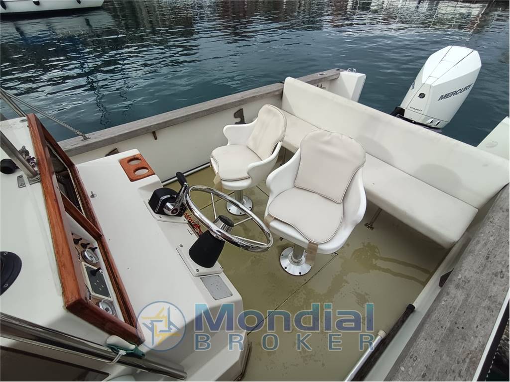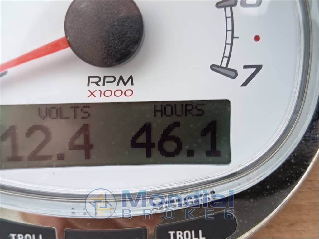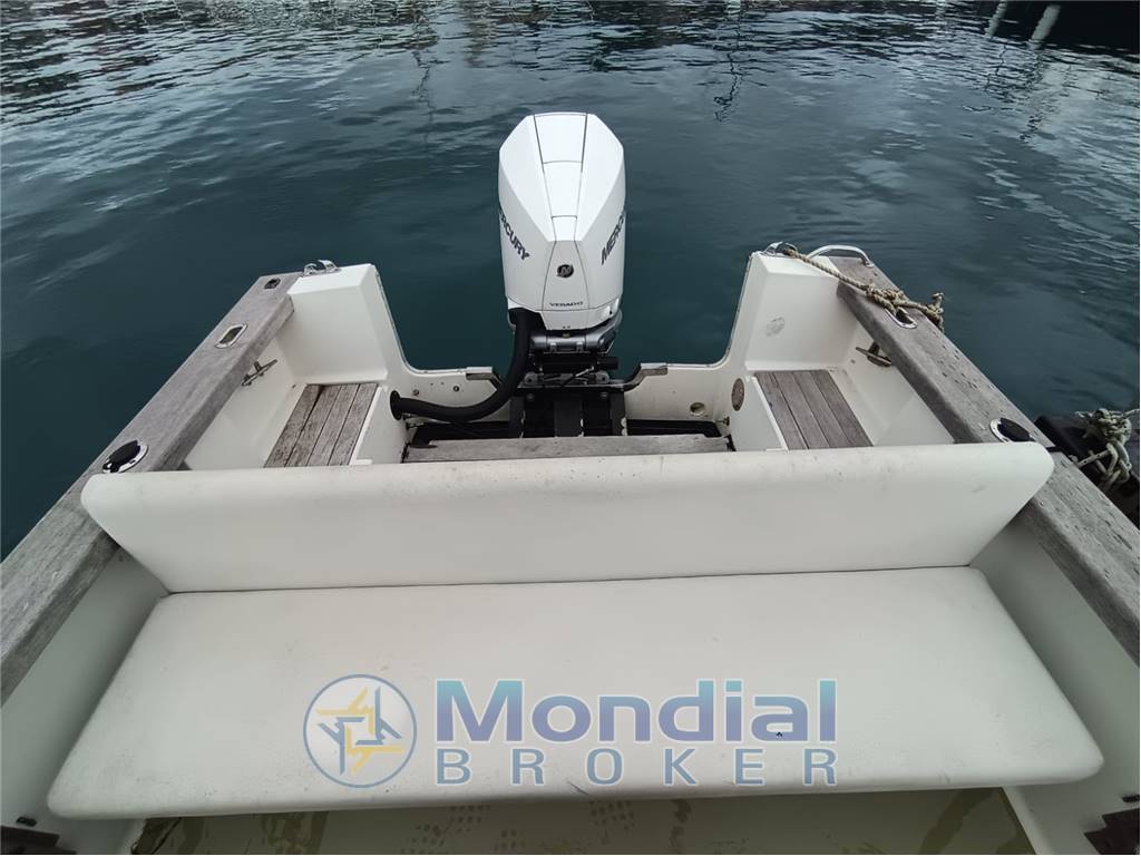 VHF – GPS/Eco/Chartplotter Raymarine 8" – Strumentazione Mercury dedicata – Manetta elettronica Mercury – Active Trim – Troll Mode Mercury – Faro di ricerca orientabile con joystick – Bussola – Indicatori analogici (trim e livello carburante)