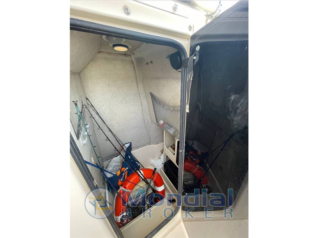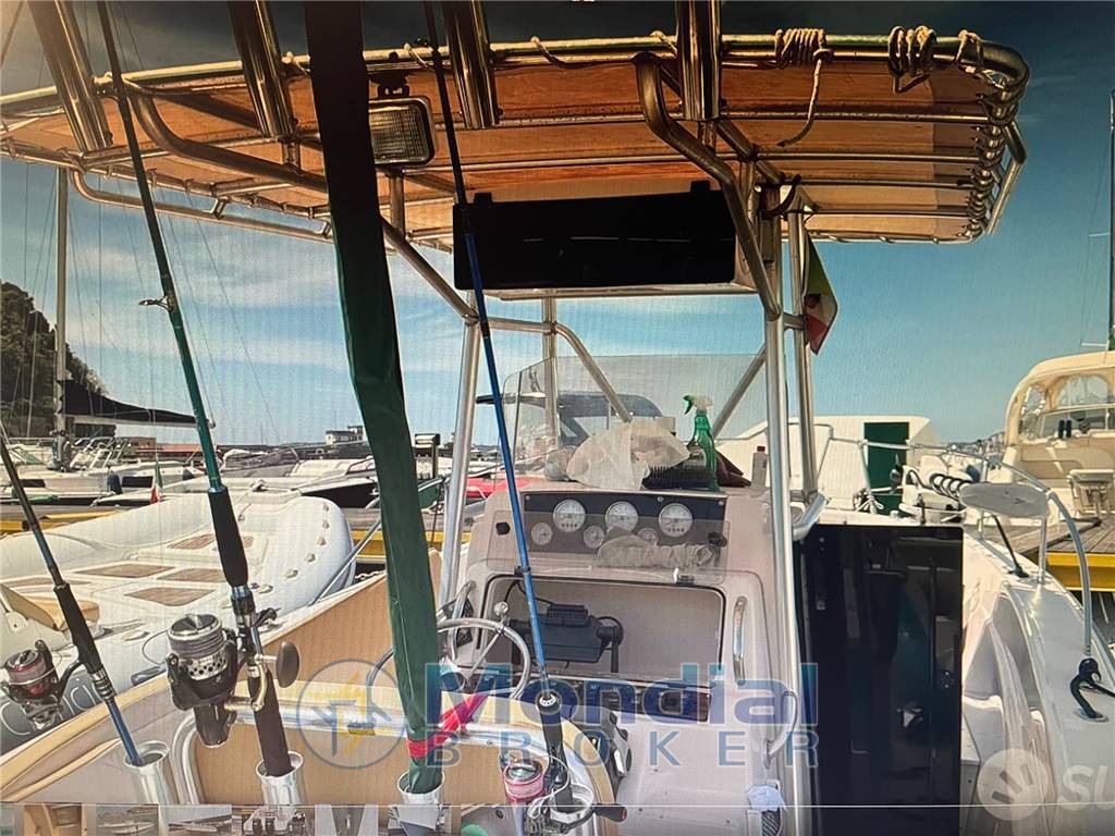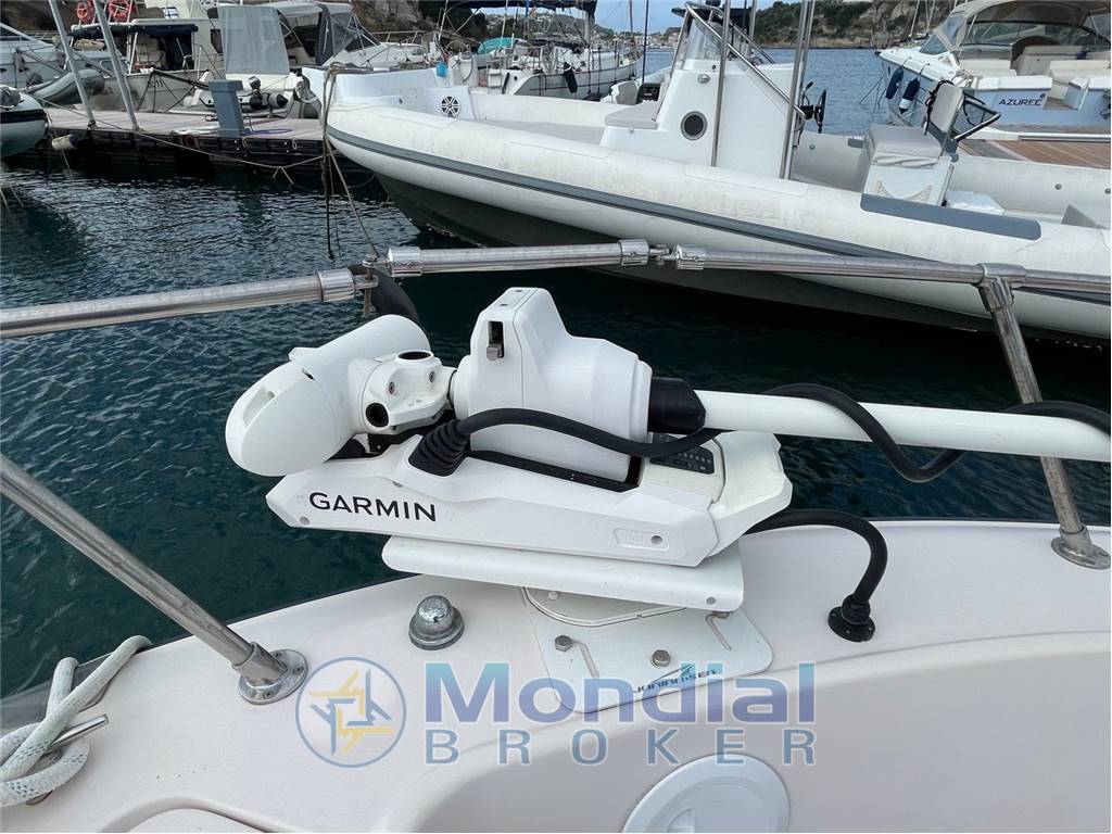 CONSOLE CENTRALE E COPERTURA SU TELAIO DI ALLUMINIO CON TELO SUPERIORE IN TESSUTO SUNBRELLA - PORTACANNE SU TELAIO IN ALLUMINIO IN ALTO - PORTACANNE PER 12 CAMME A RIPOSO - CASSA PER IL VIVO - PRESA DI MARE CON POMPA AD ALTA PRESSIONE PER LAVVAGGIO POZZETTO - VERRICELLO ELETTRICO CON ANCORA E 50 M. DI CATENA + ANCORA DI RISPETTO -CARICABATTERIE 220 V CON CAVO GOMMATO - SOTTO LA CONSOLE AMPIO STIVAGGIO E WC CHIMICO -