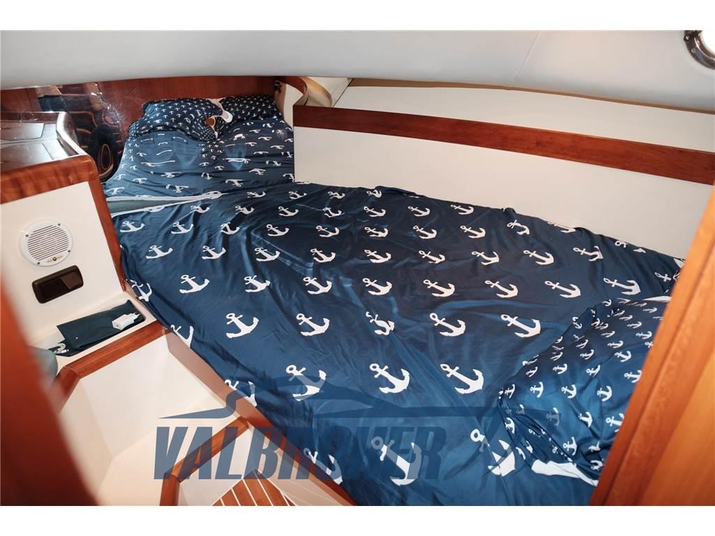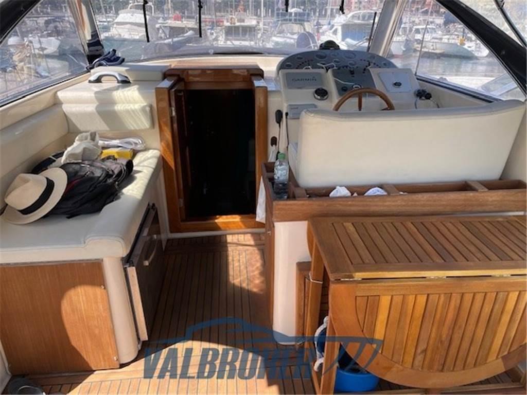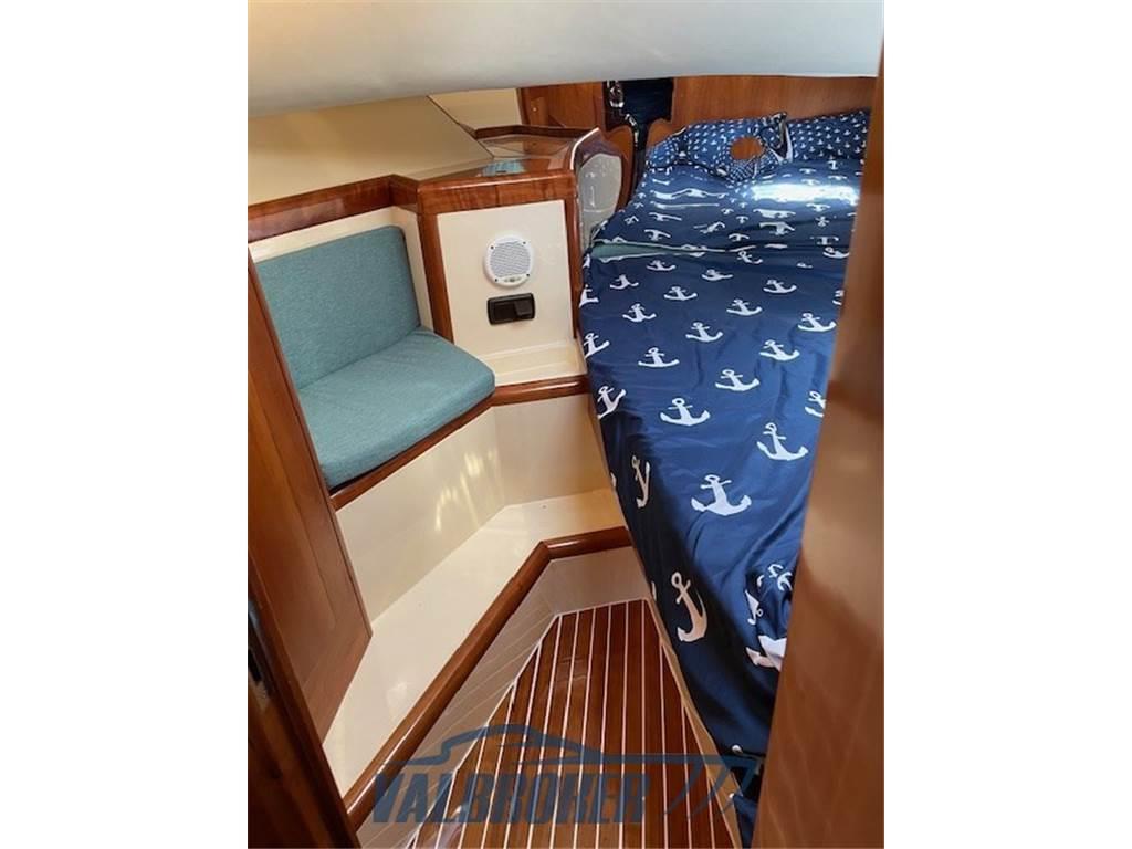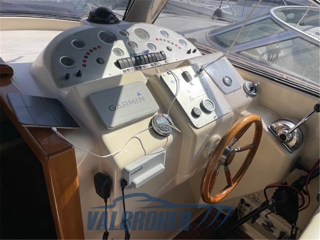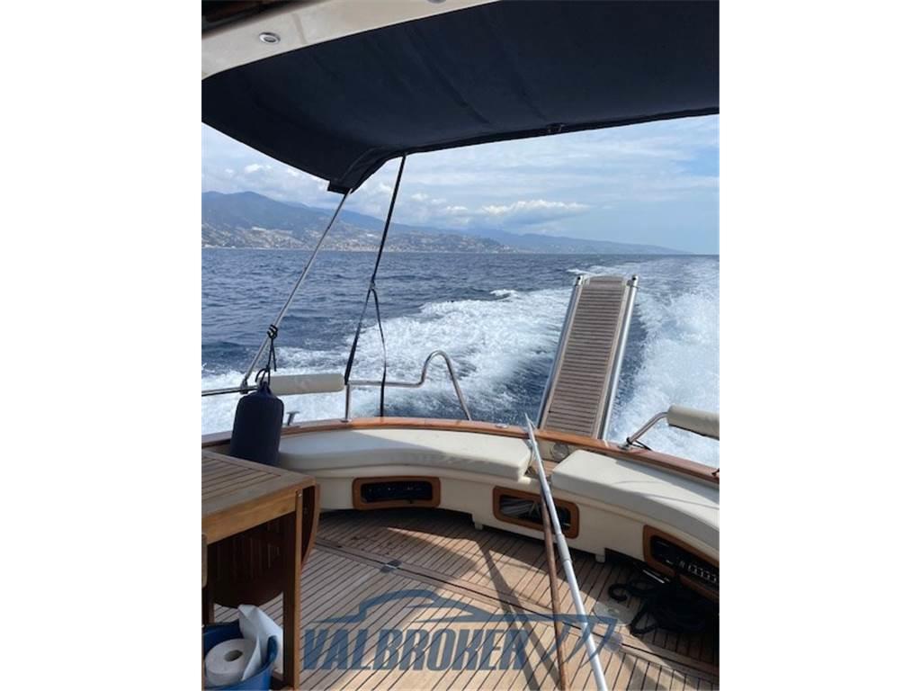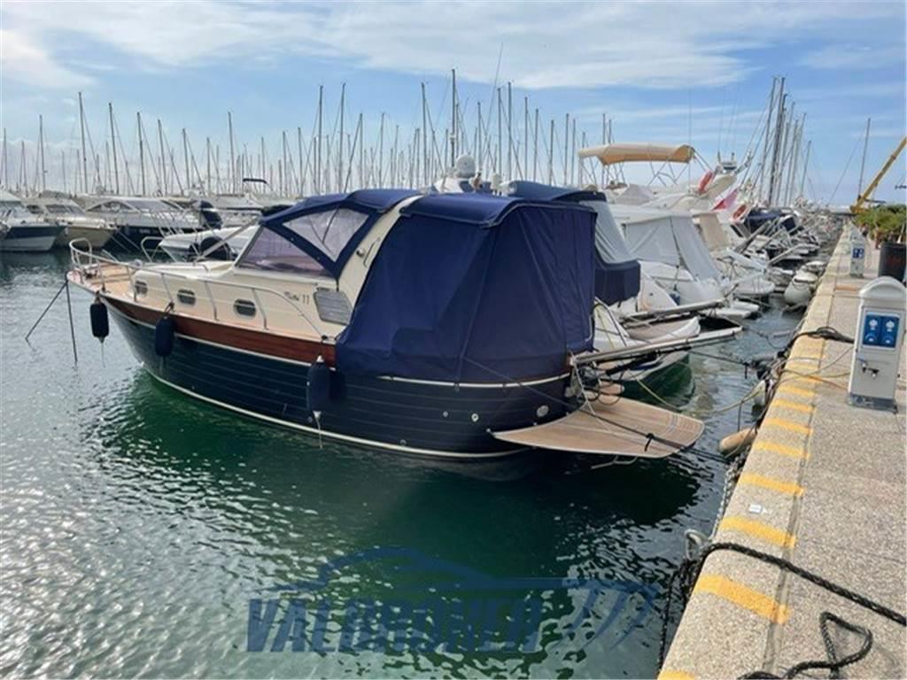 Imbarcazione in classico stile mediterraneo, Mimi Libeccio 11, Motori 2x300HP VM MD 706 LH, visibile in Costa Azzurra. Cabina a prua con porta, cucina e dinette trasformabile in letto matrimoniale. Bagno con doccia. Ampio pozzetto.