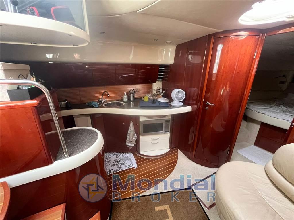 Interni Farline Classici in ciliegio ed inserti in radica e pavimenti in moquette colore chiara - cabina Armatore a prua con letto matrimoniale ad isola e bagno di privato con box doccia separato - cabina ospiti doppia con letti in piano trasformabili in matrimoniale con bagno privato e box doccia separato - elegante dinette con grande tavolo in radica apribile e divano a ''C'' colore avorio in stoffa - contrapposto mobile con cucina molto grande e completa con piano cottura in vetroceramica, doppio lavello e forno combinato , frigo mobili dispensa - piastra fuochi in vetroceramica e lavello inox - forno microonde sharp - i bagni hanno tutti il wc elettrico con lavaggio acqua dolce - comodo pozzetto con pavimento in teak , divano a c con tavolo in teak apribile per 6 persone e con grande prendisole con cuscinerie in similpelle