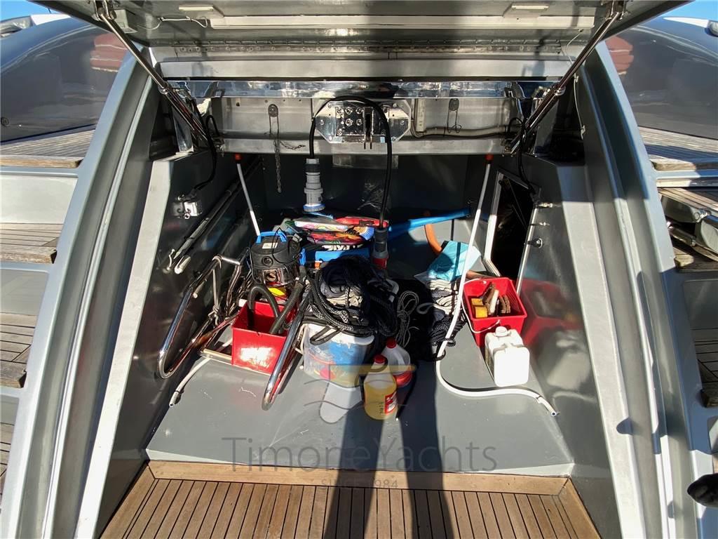 Bitte Abbattibili, Camminamenti laterali in teak, Doccia esterna, Elica di poppa - stern thruster, Elica di prua - bow thruster, Faro orientabile, Flap idraulici, Garage per tender, Hard top, Impianto antincendio, Indicatori Flaps, Lavaggio catena, Luci subacquee, Passerella, 2 Porta laterale, Pozzetto Teak, Presa 220V banchina, Presa acqua banchina, Tavolo pozzetto, Tromba, 2 Winch tonneggio di poppa, Winch tonneggio di prua.