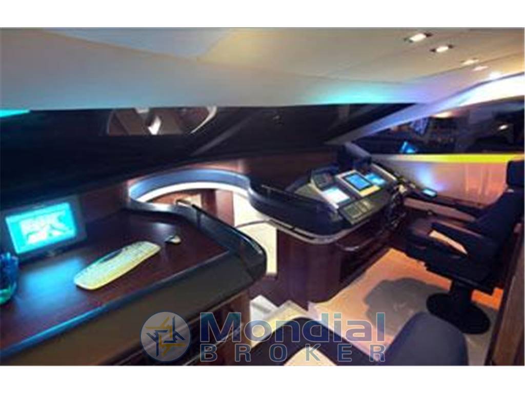 C- shape seating and table on flying bridge, Bosch washer/dryer, Maswell 4000 windlass, foredeck sunpads, hi-lo teak cockpit table, Cruisair 100,00 Btu A/C, 32" Panasonic plasma TV in saloon, Treben leather helm and companios seating, Miele galley appliances including 4 burner cooktop, double oven, and dishwasher, Gaggeneau fridge and freezer, granite or marble countertops, Tecma MSDs 2/17.5 kw Kohler gensets w/soundshields, Raymarine electronics package, including 240 VHF, E 80 radar/plotter w/8" display, ST290 autopilot, autohelm, and 120 WAAS GPS.