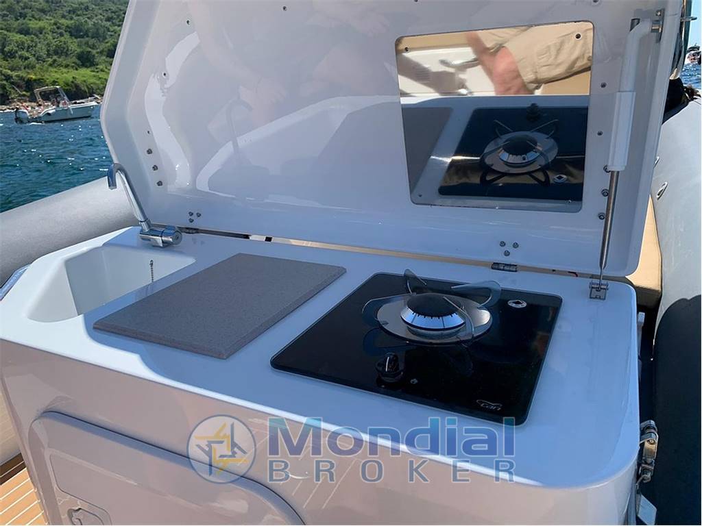 La disposizione del ponte consente di godere di spazi ampi , insoliti per gommoni di 7 mt.