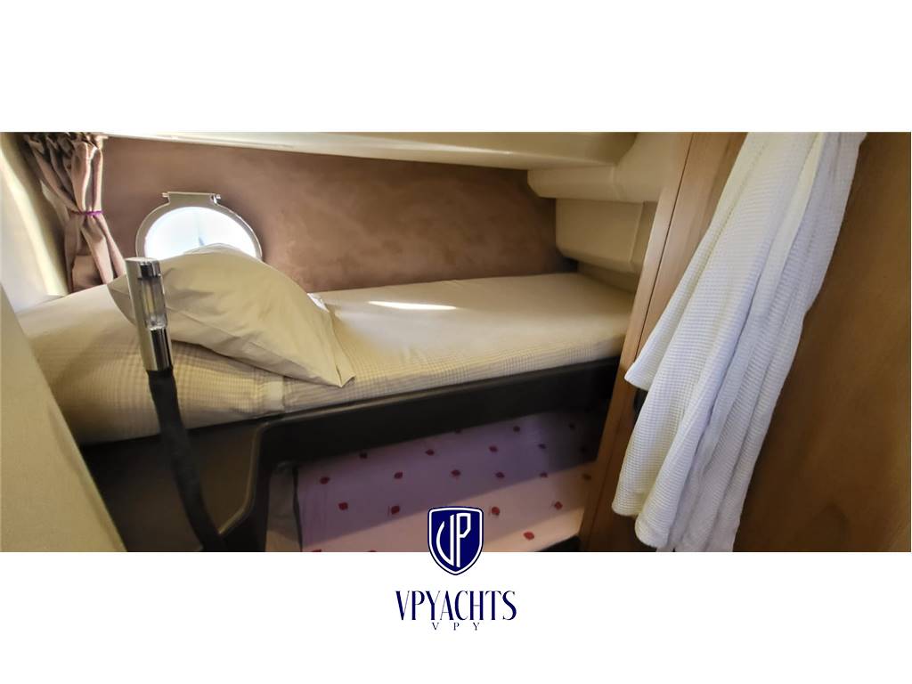 1 cabina armatore, 1 Toilette armatore, 1 Cabina Vip, 1 Toilette Vip, 1 cabina ospiti letti a castello, 1 cabina marinaio