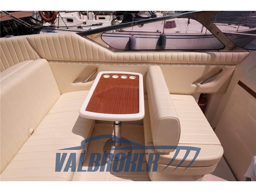 Grande cantiere italiano di qualità senza tempo, motorizzato 2x260 Hp Volvo Penta KAD 44 Turbo diesel con comandi motori elettronici. Barca dalla linea sportiva ed elegante, ampio prendisole fisso a poppa. Interni curati, letto matrimoniale a V a prua, bagno con porta, cucinetta con lavello e fornello. Seguita da noi da anni, venduta da noi all'attuale proprietario. Marzo 2026: nuovo telo copertura pozzetto, tagliando completo di motori e trasmissioni, lucidatura completa, carena portata a zero, rimozione vecchia antivegetativa tramite sabbiatura, applicazione resina epossidica per isolamento carena, applicazione primer e antivegetativa, nuovo teak su pozzetto e plancetta.