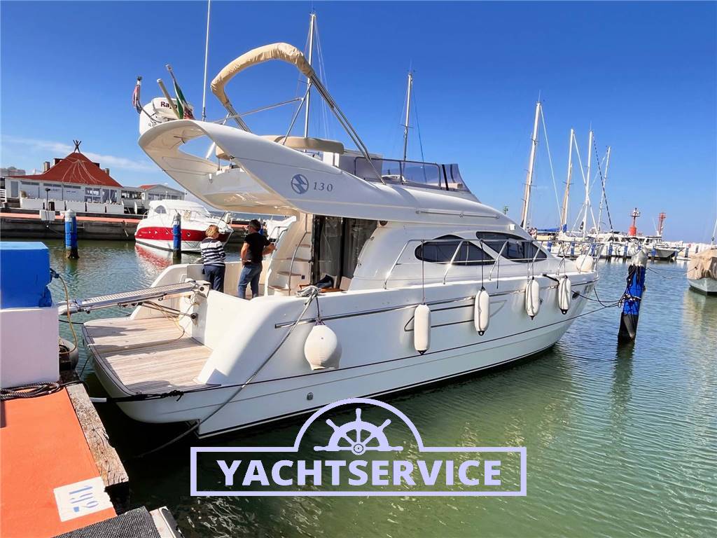 Pozzetto e plancetta di poppa in teak, passerella idraulica, calpestio interno tutto teak filettato acero bianco e mobilio in cìliegio satinato, doppia dinette in pelle bianca, strumentazione elettronica Raymarine nuova, completa anche di radar ed elica di prua.